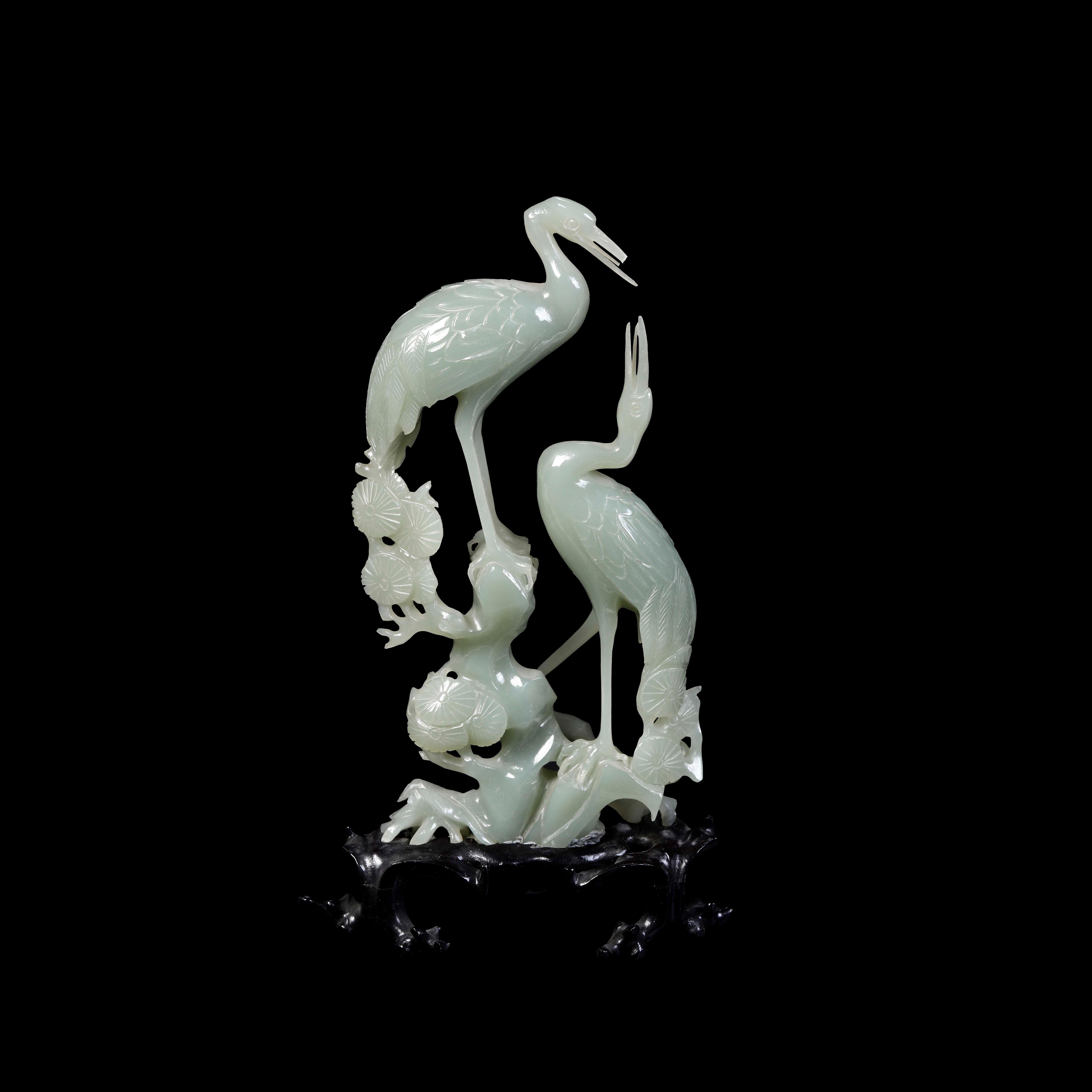 Giada raffigurante aironi. Cina XX secolo