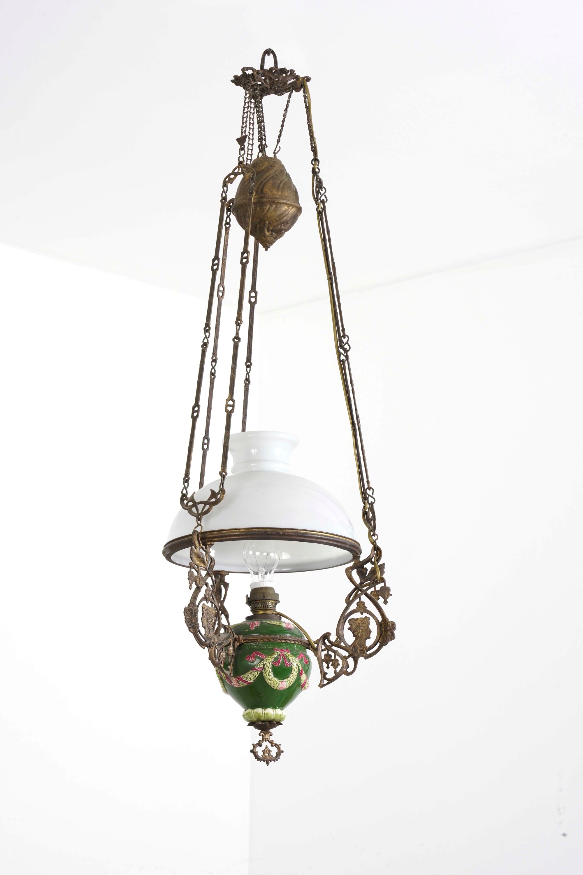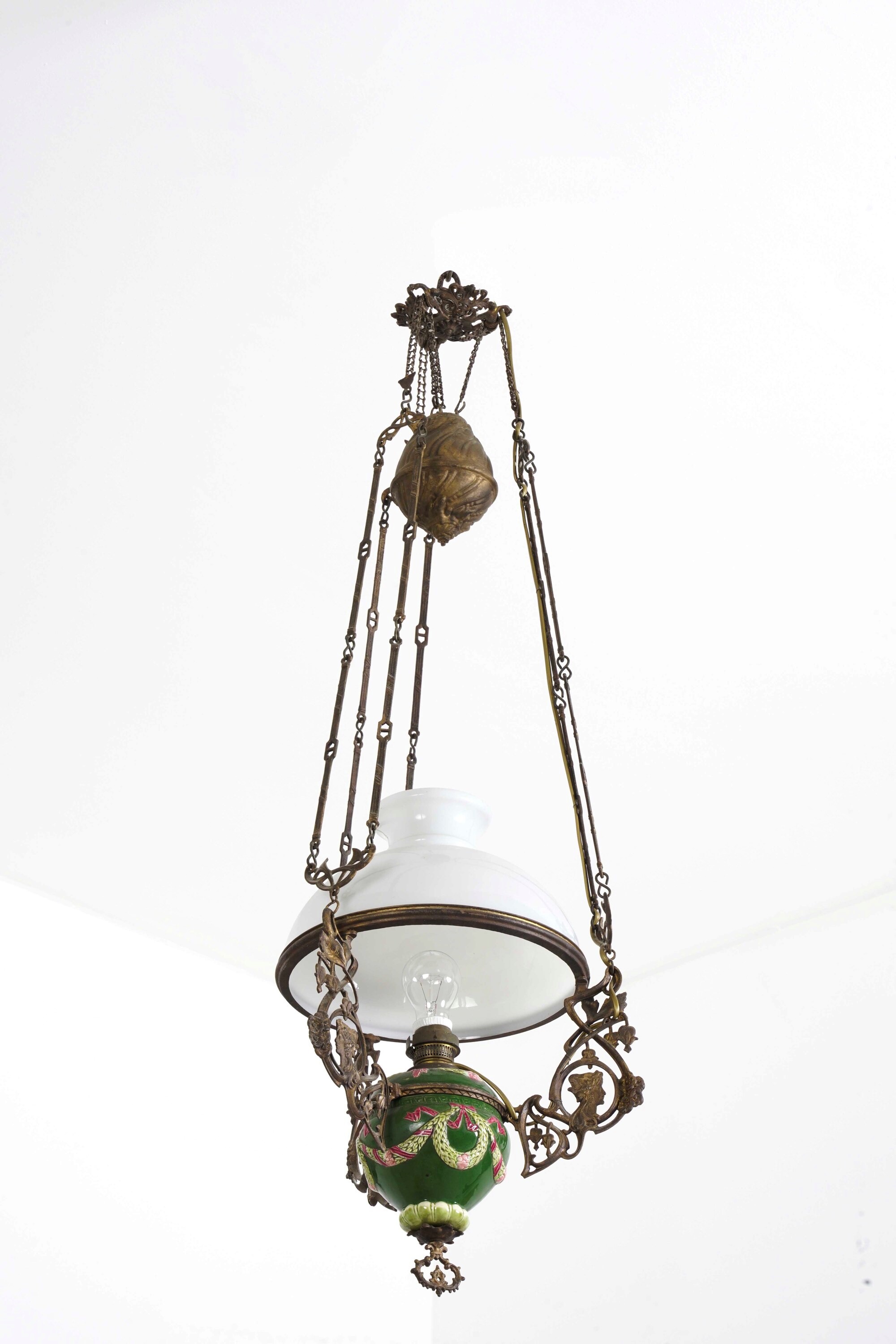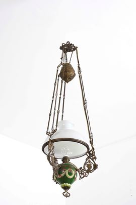 Lampadario liberty in porcellana e vetro. XX secolo