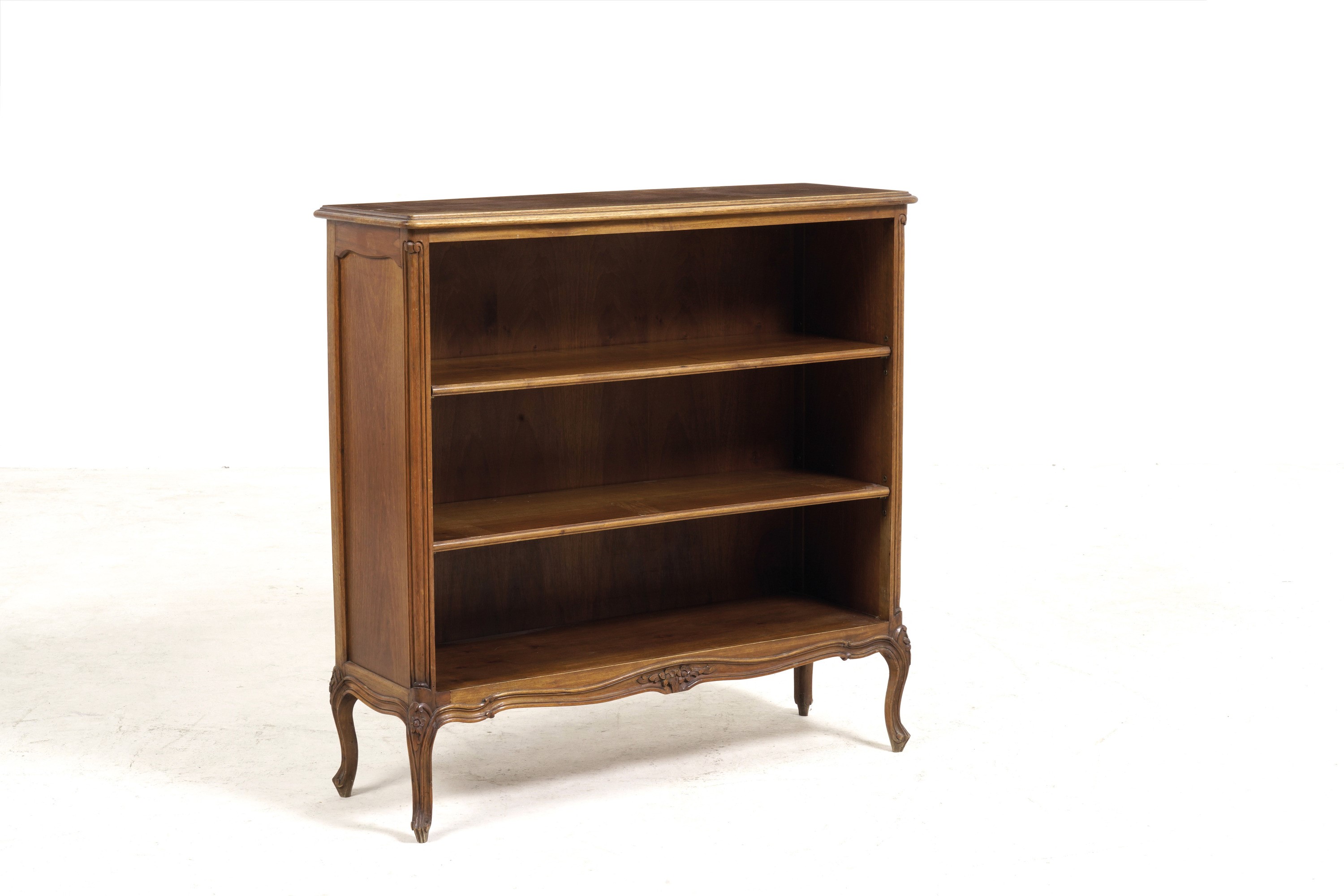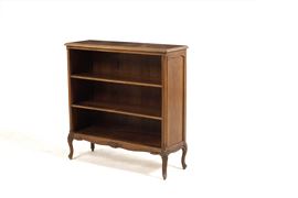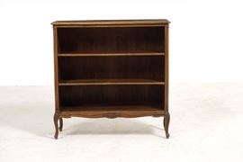 Libreria a tre piano, tavolo con piano a vassoio, entrambi con gambe mosse