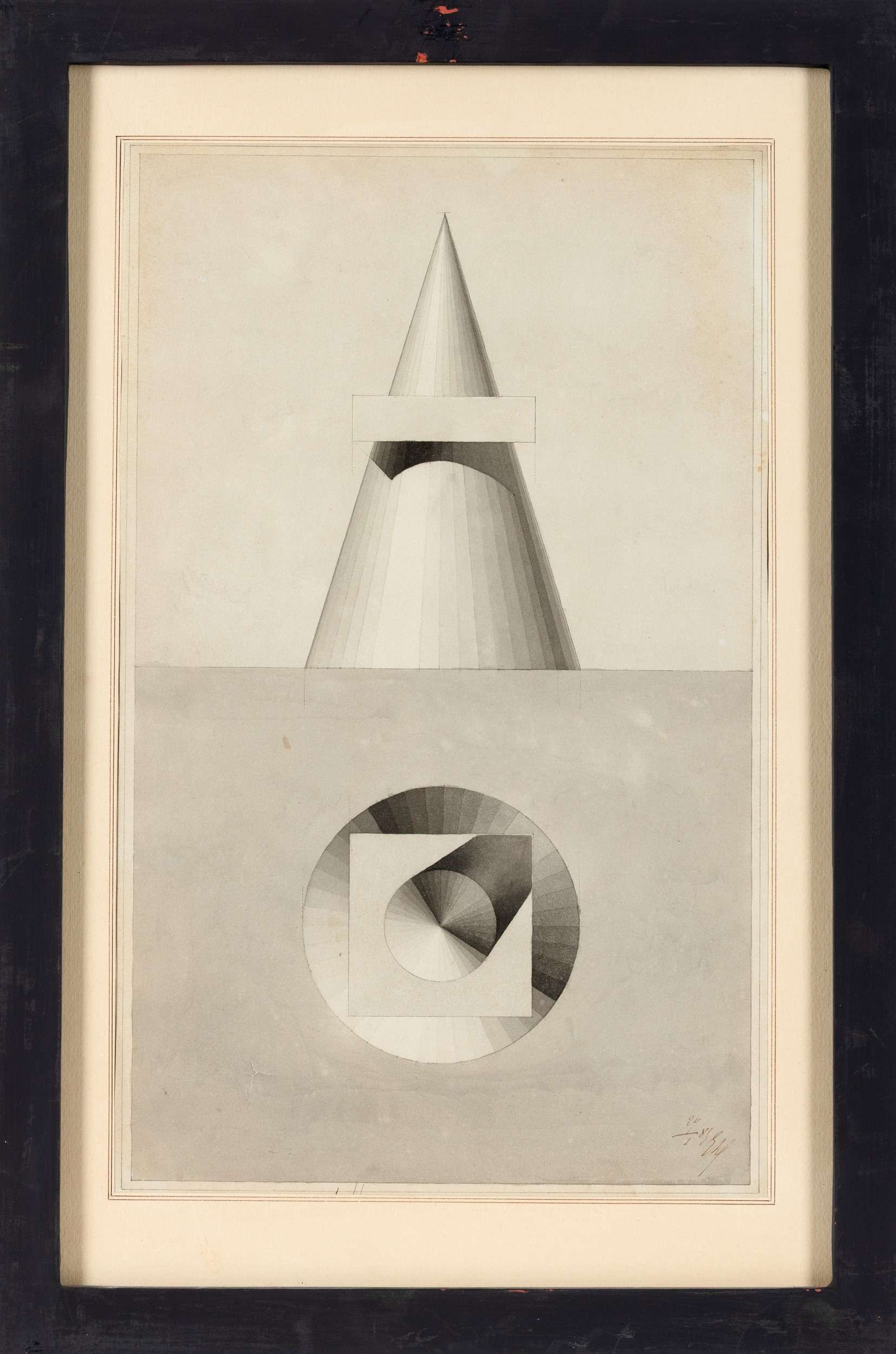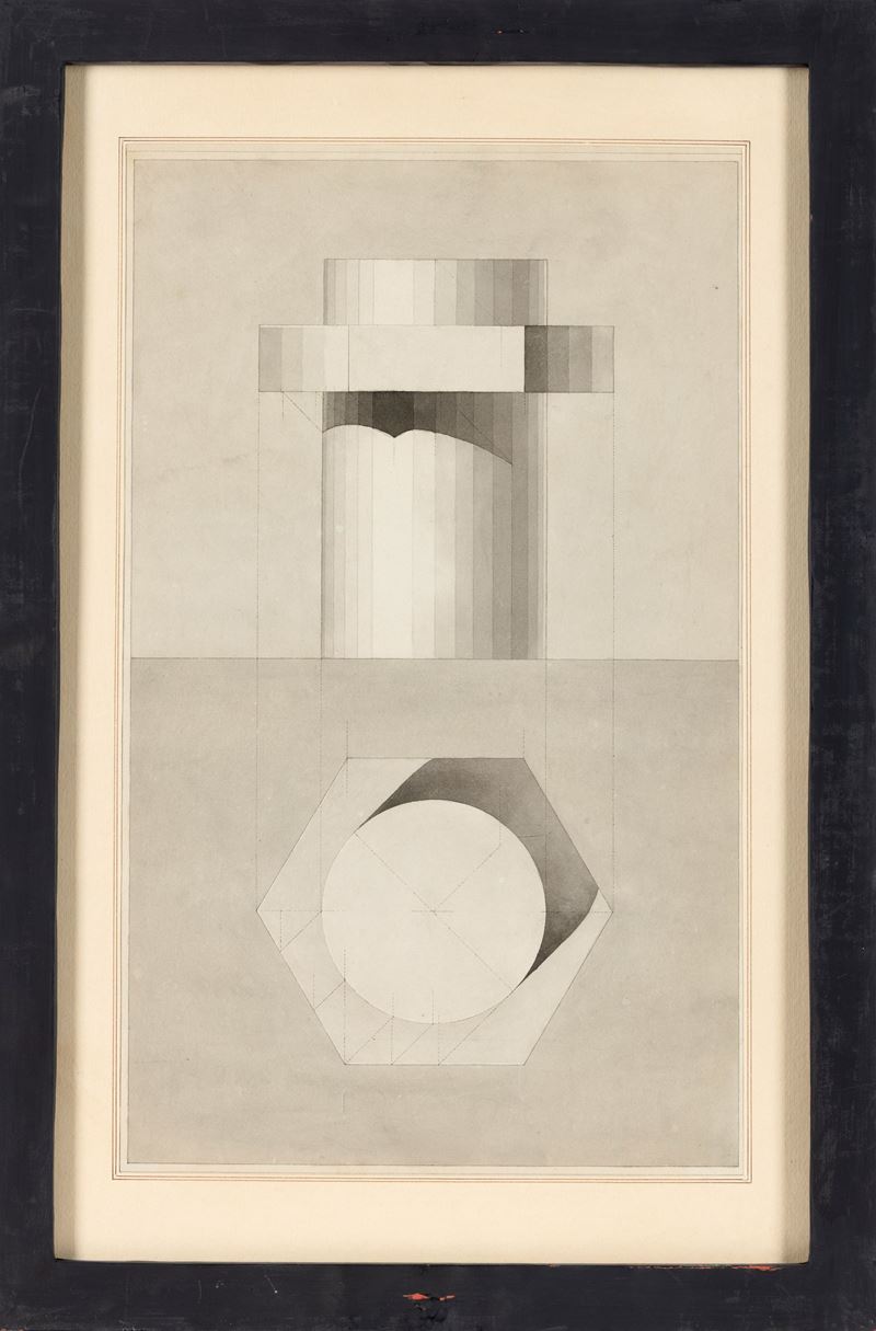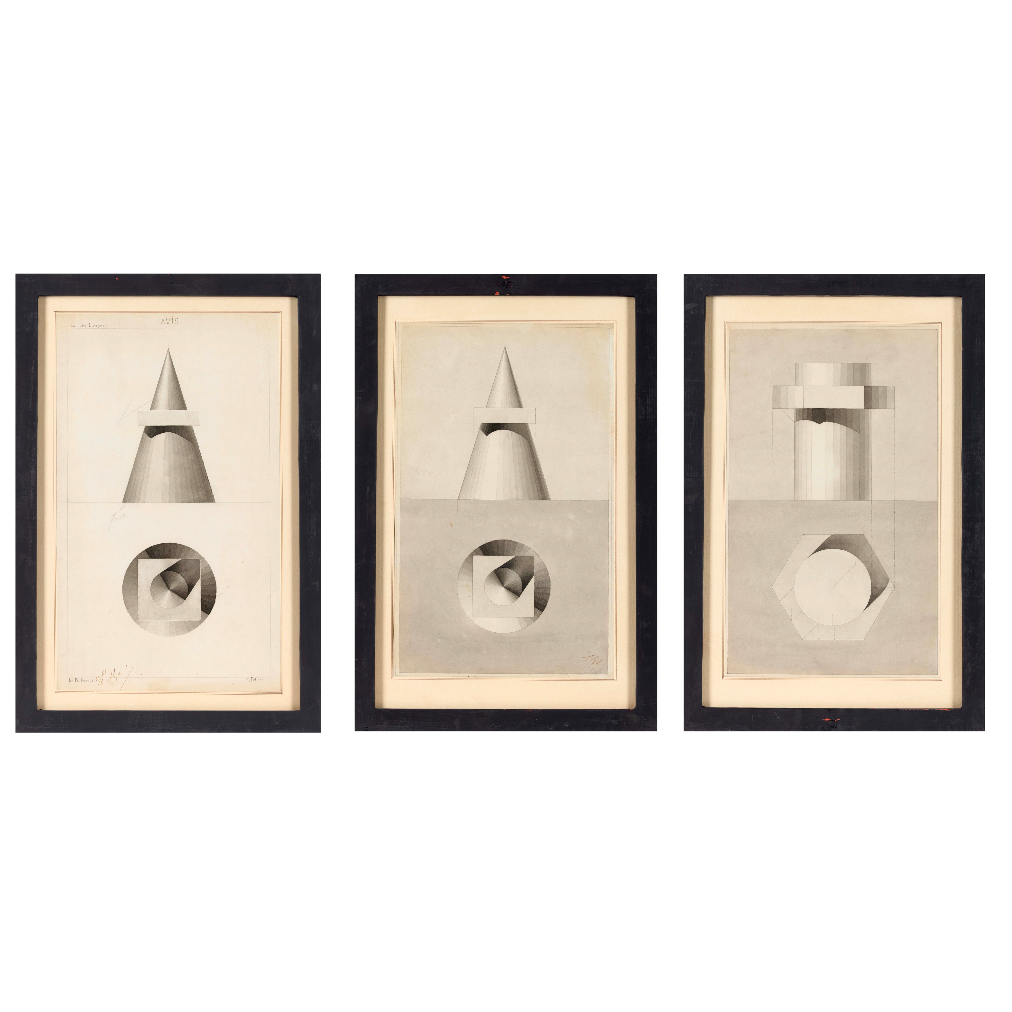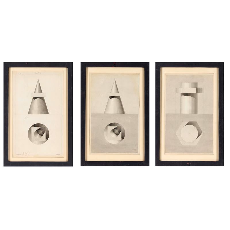 Lotto di tre prove accademiche con disegni tecnico-geometrici