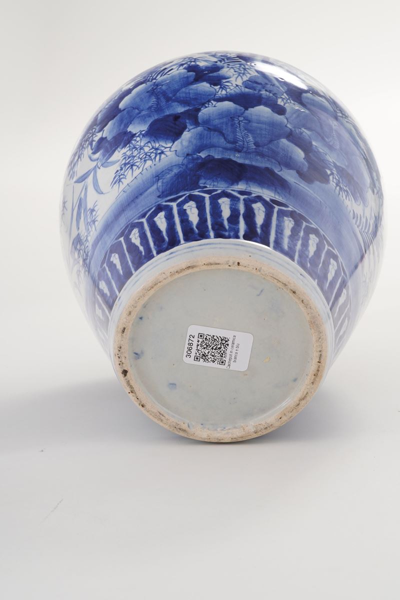 Potiche in ceramica bianca e blu, Giappone XX secolo