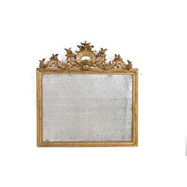 Specchiera in legno dorato e intagliato, con ricca cimasa sagomata Roma, stile XVIII secolo, XX secolo