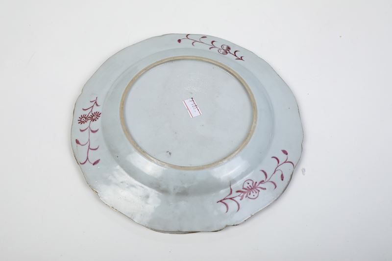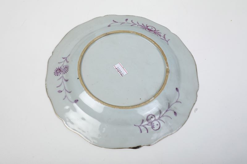 Tre piatti in porcellana Famiglia Rosa con motivi floreali. Cina, Dinastia Qing, epoca Qianlong (1736-1796)