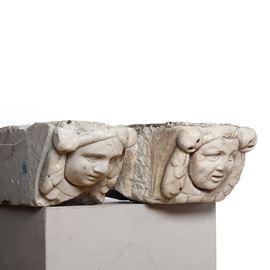 Lapicida del XVII-XVIII secolo Coppia di mensole con protomi antropomorfi