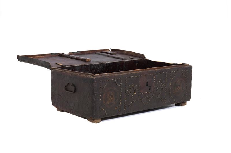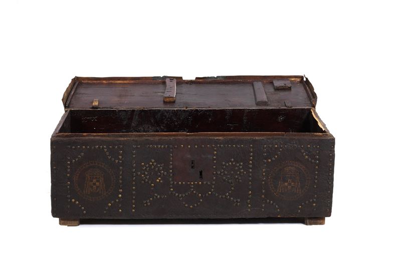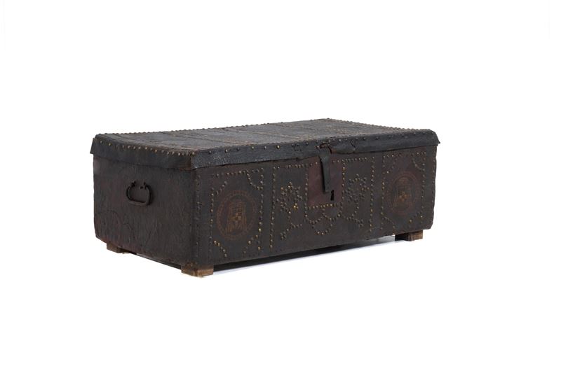 Baule in legno e pelle borchiata. XVII-XVIII secolo