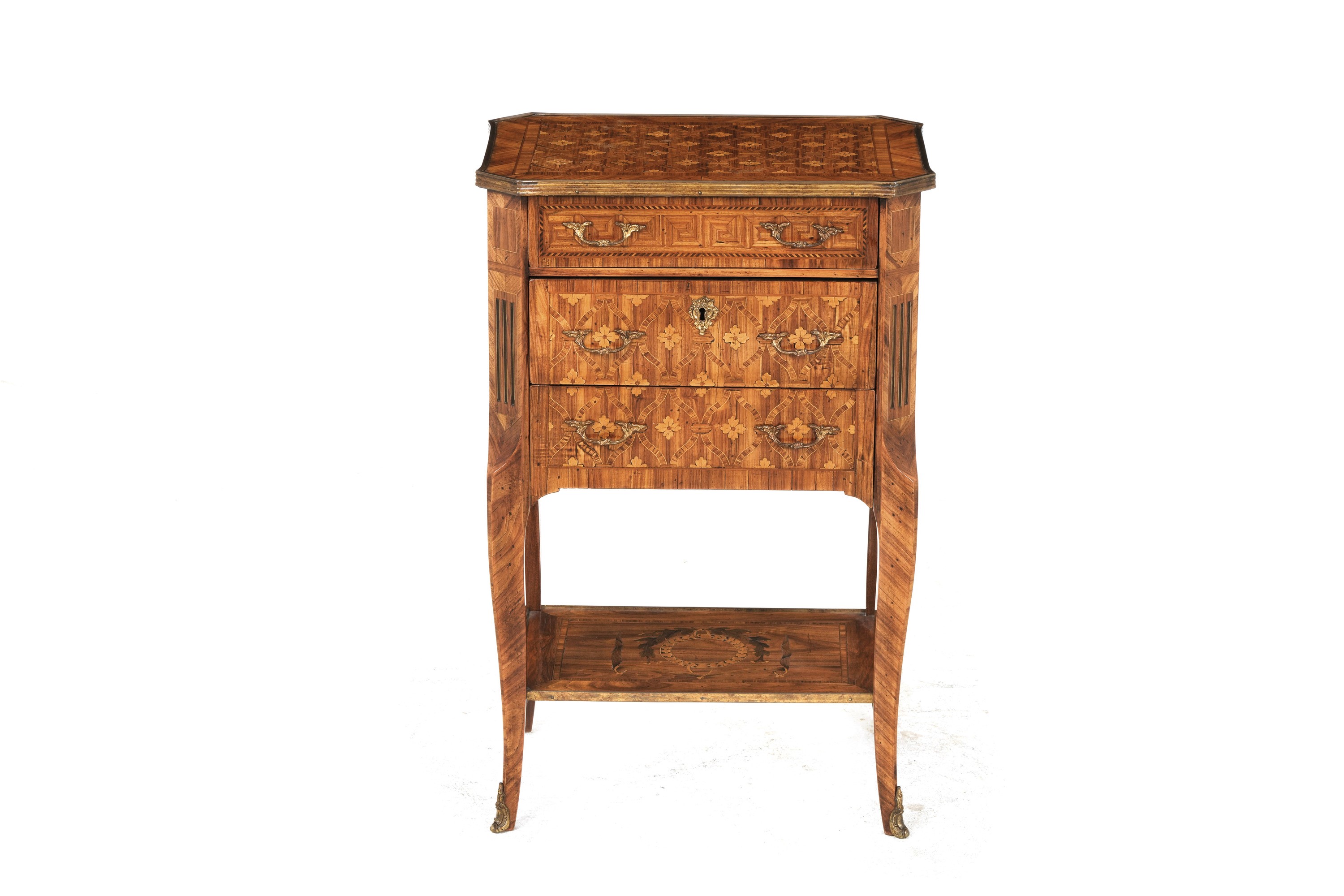 Comodino lastronato ed intarsiato. Francia XIX secolo