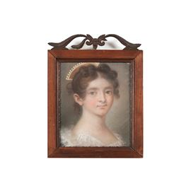 Piccolo dipinto raffigurante figura femminile. XIX secolo