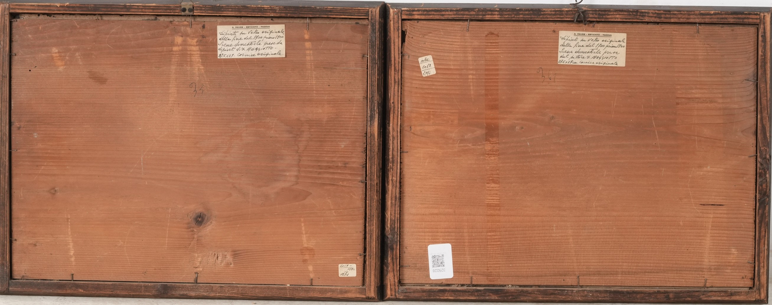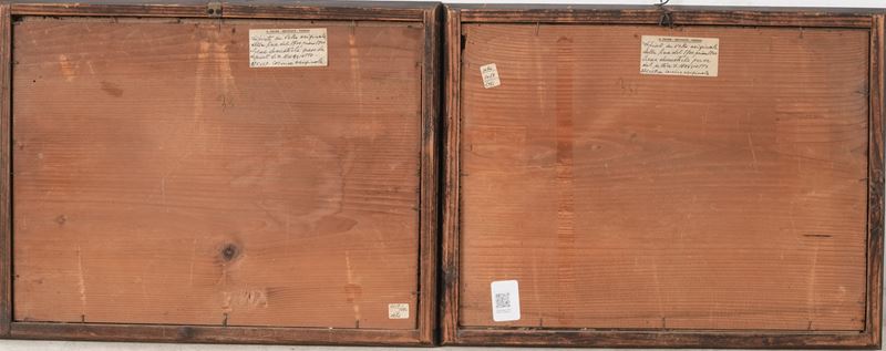 coppia di dipinti su vetro