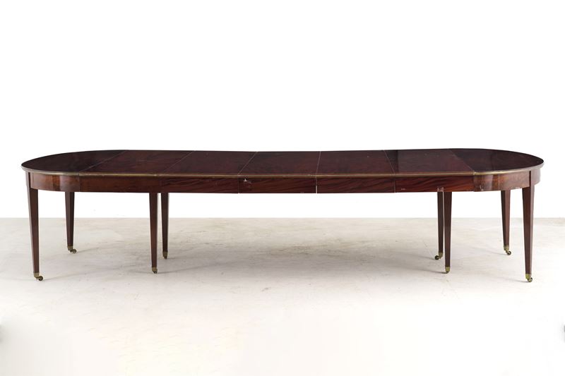 Tavolo da pranzo in mogano con piano allungabile. Inghilterra, XIX secolo