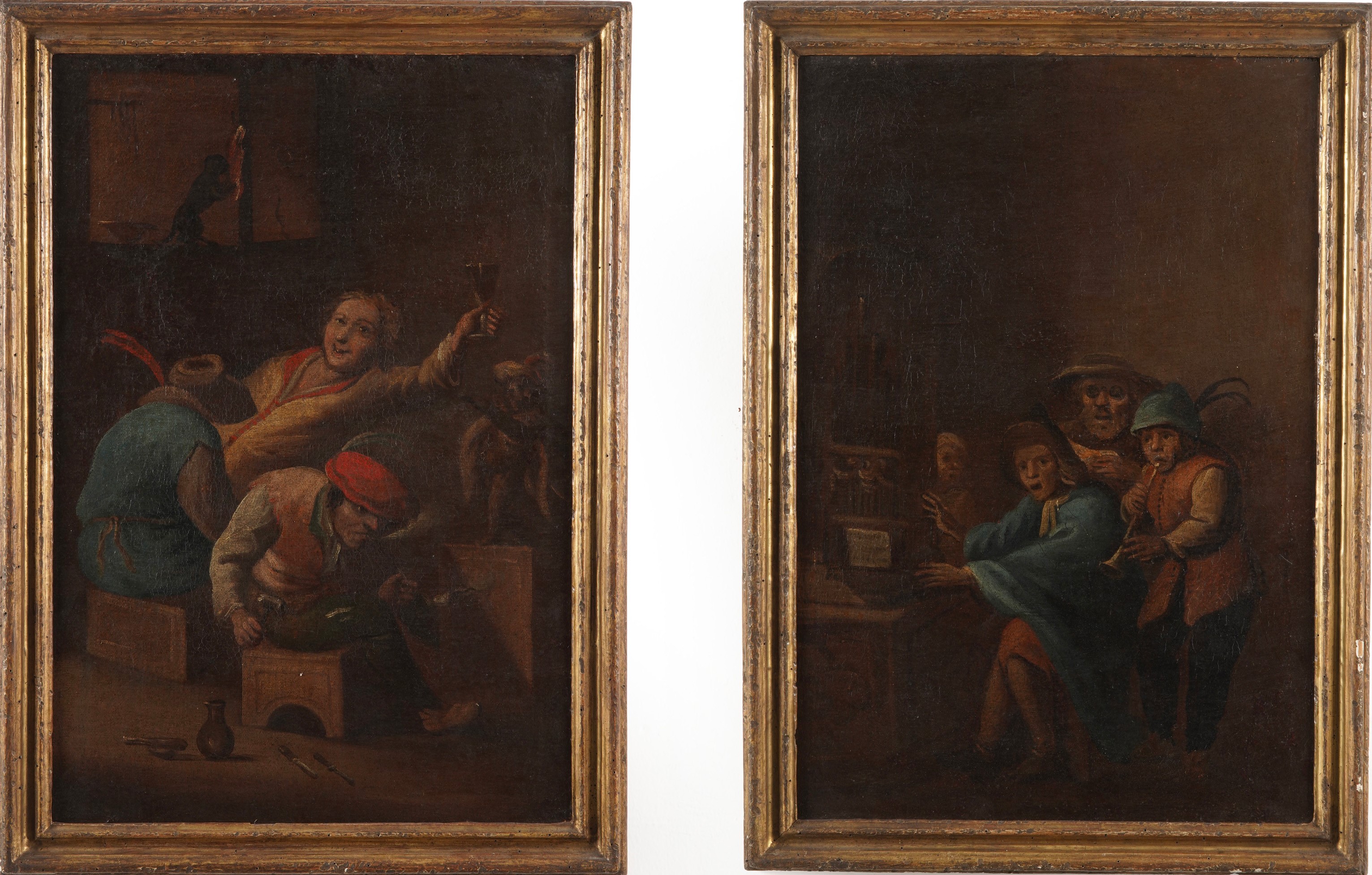 Scuola del XVII-XVIII secolo Scene con interni di osteria