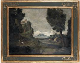 Scuola del XVIII secolo Paesaggio montano con figure di contadini