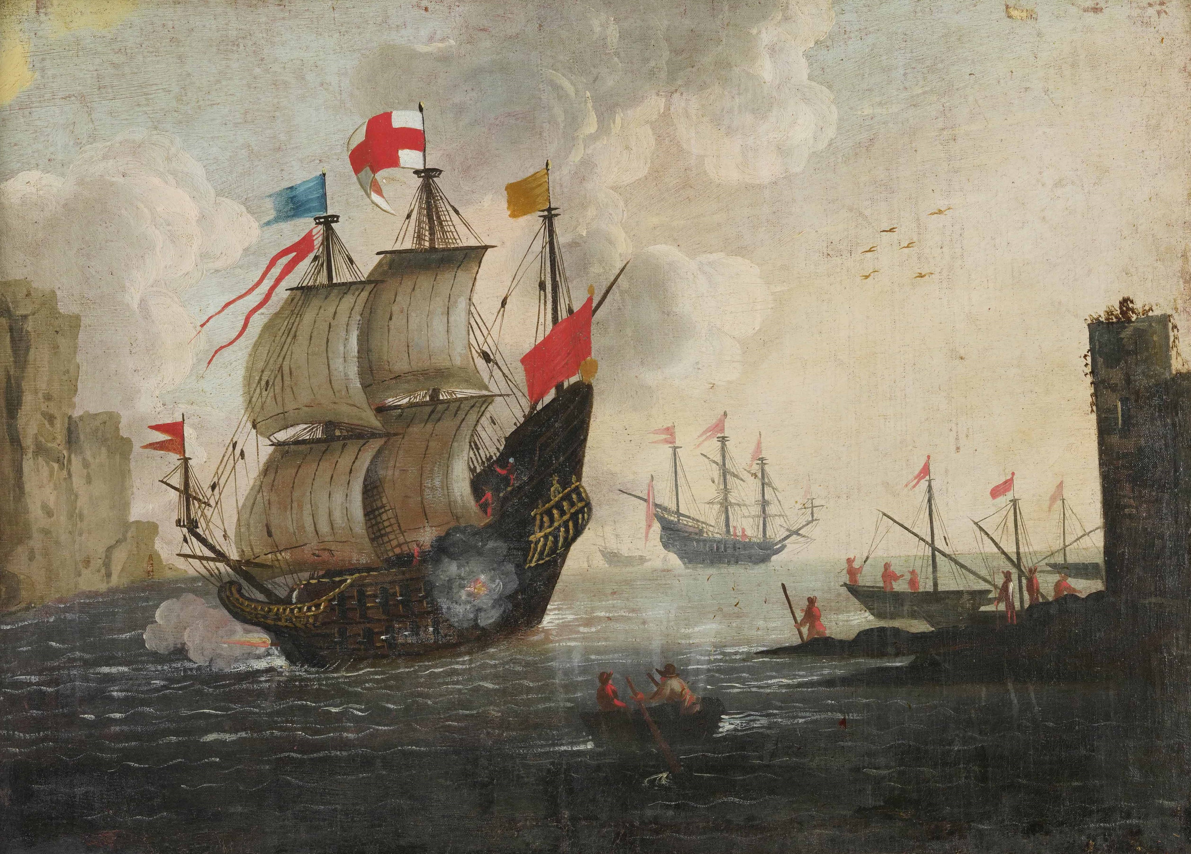 Scuola del XVIII secolo Scontro navale