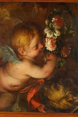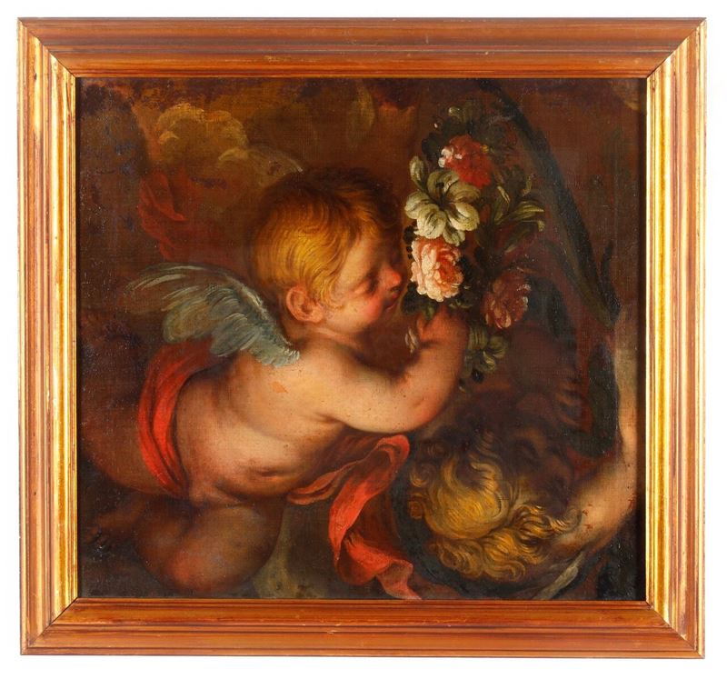 Scuola genovese del XVII secolo Angioletti che porgono i segni del martirio
