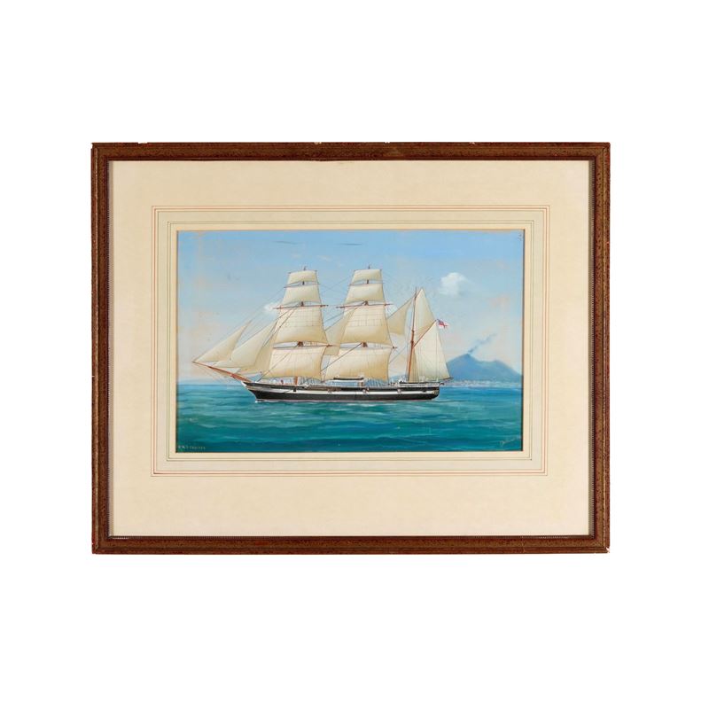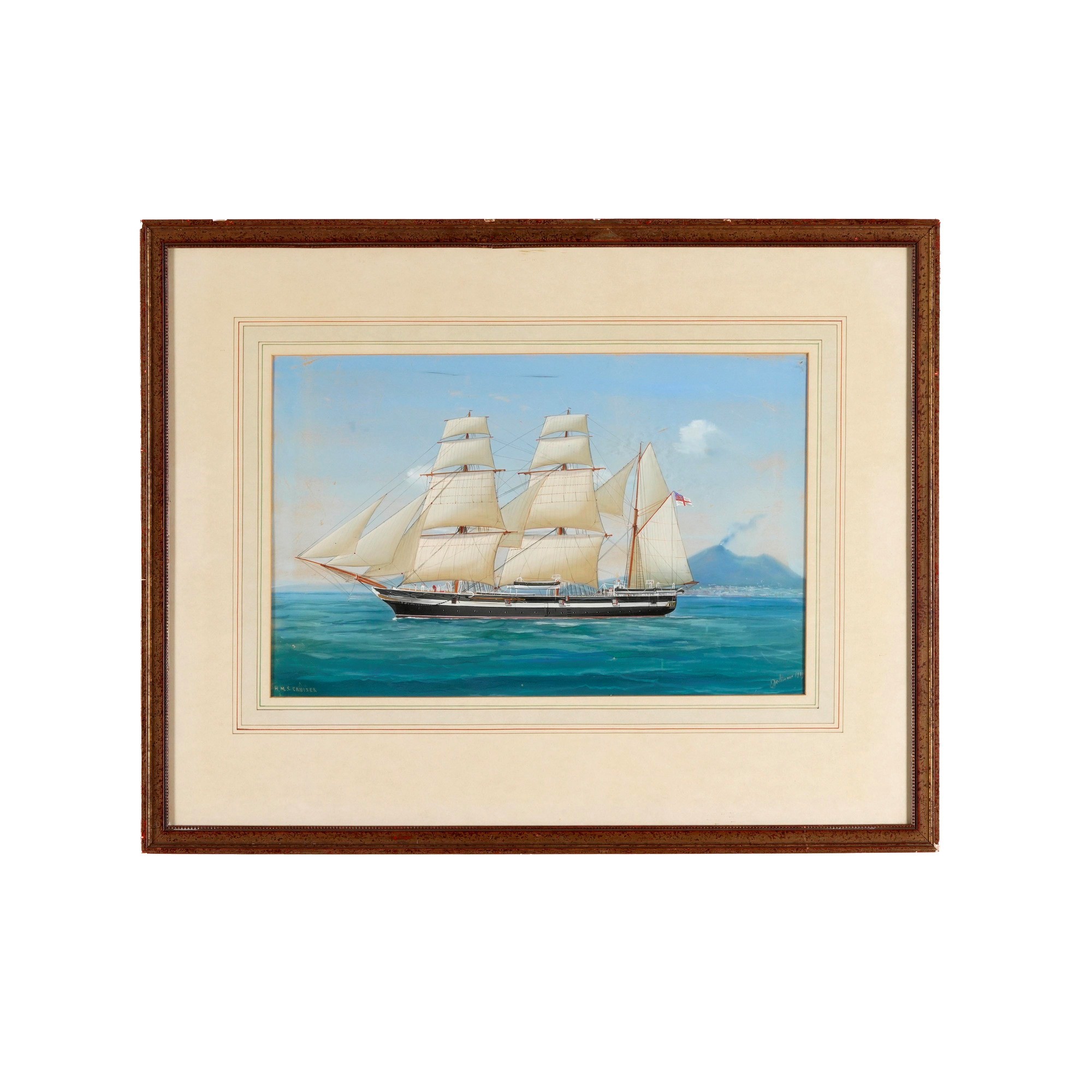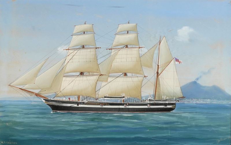 Ritratto del H.M.S. Cruiser in navigazione al largo di Napoli