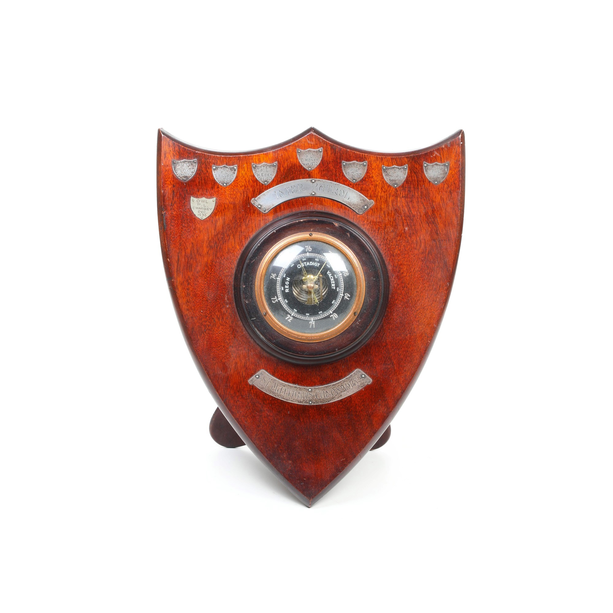 Struttura a foggia di scudo. Applicazioni in metallo con date dal 1929 al 1930
