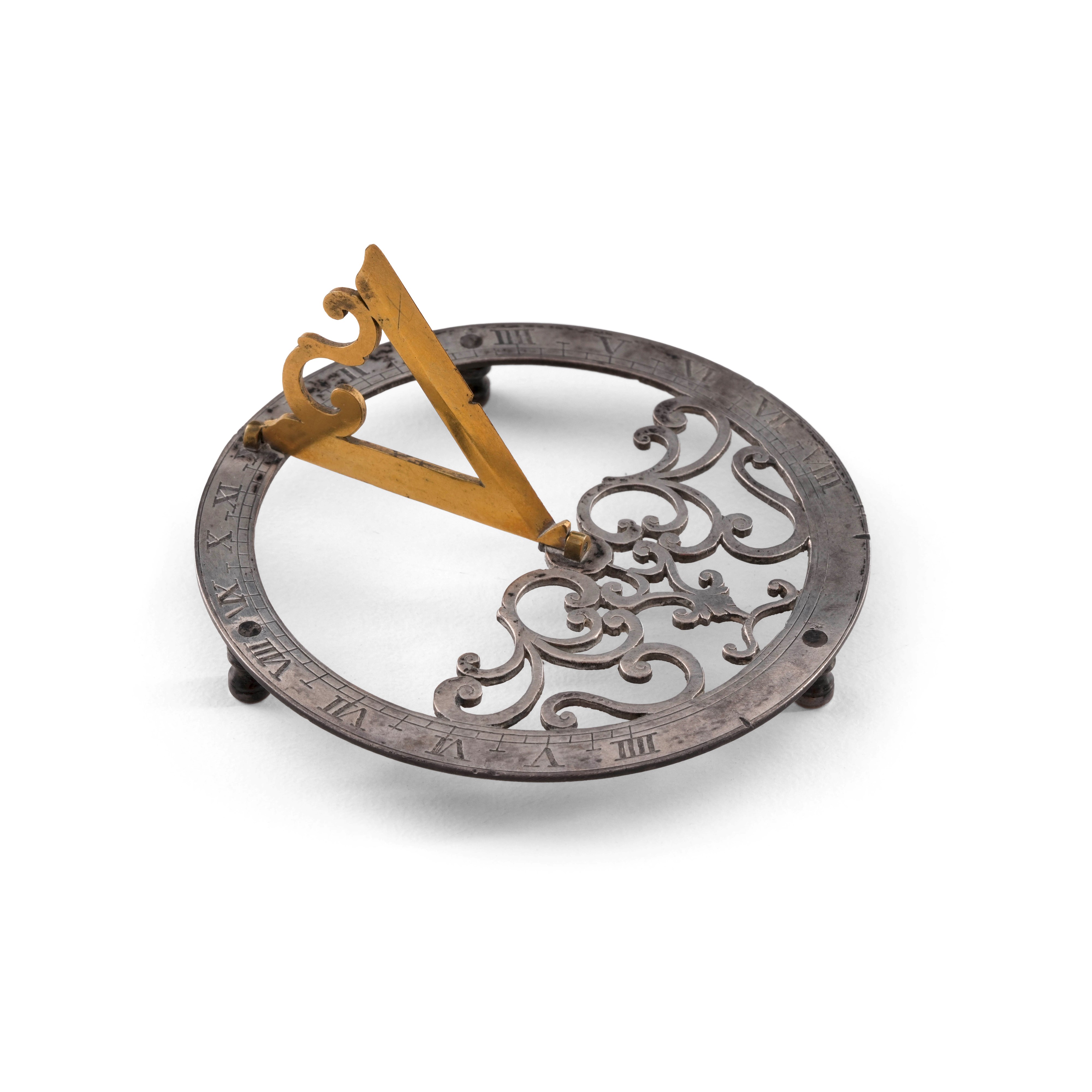 Meridiana in argento con gnomone dorato. XIX secolo