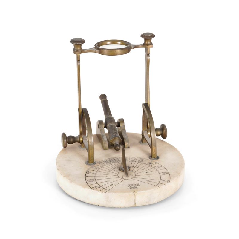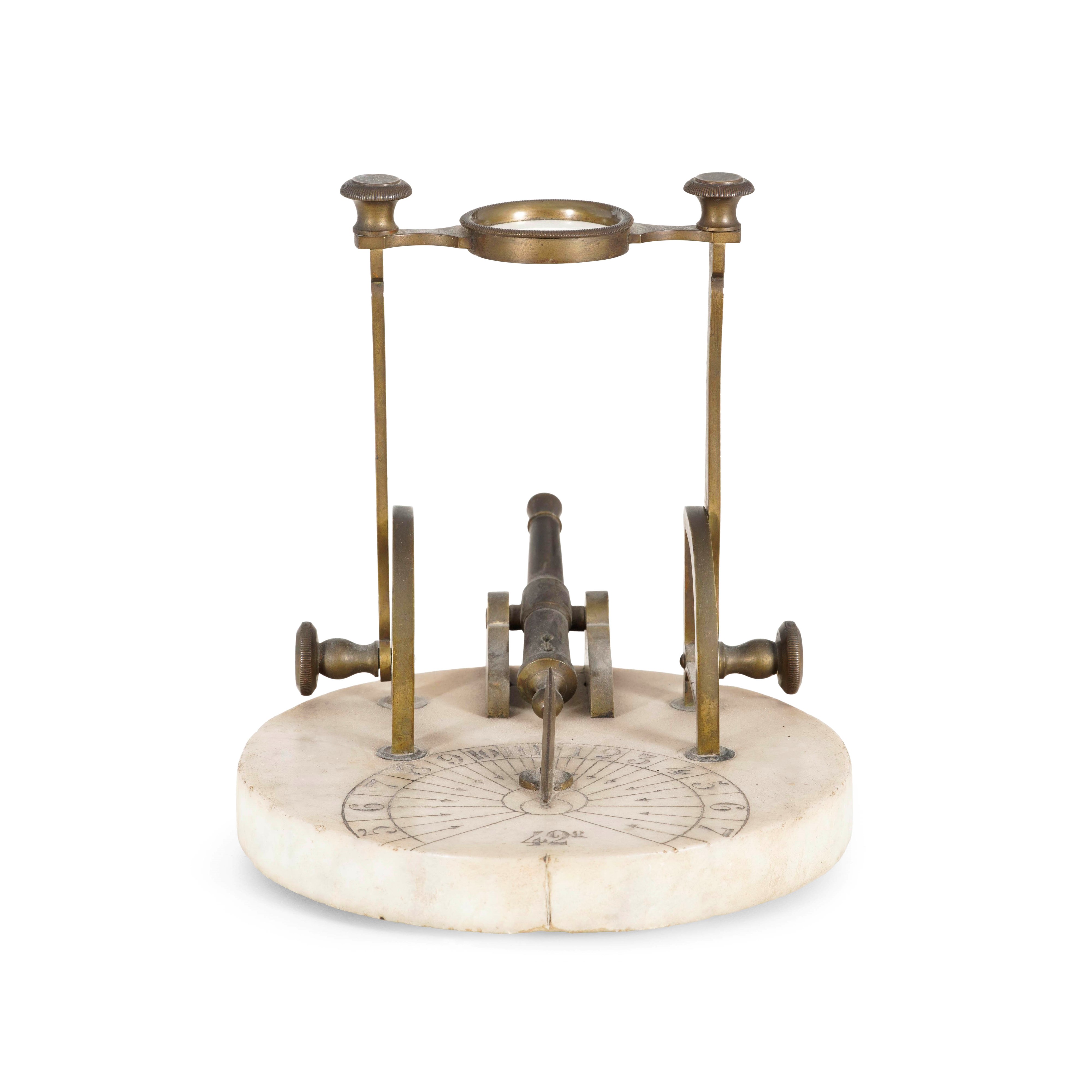 Meridiana rotonda "a cannone" in marmo e ottone. XIX secolo
