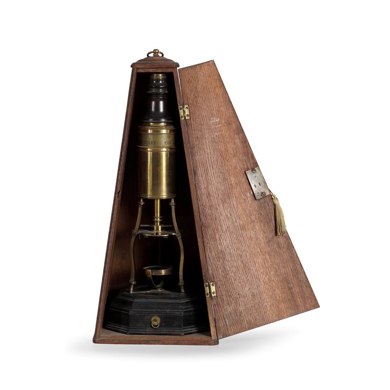 Microscopio in ottone del tipo Culpaper. Firmato Thomas Ribright, attivo dal 1756 al 1789