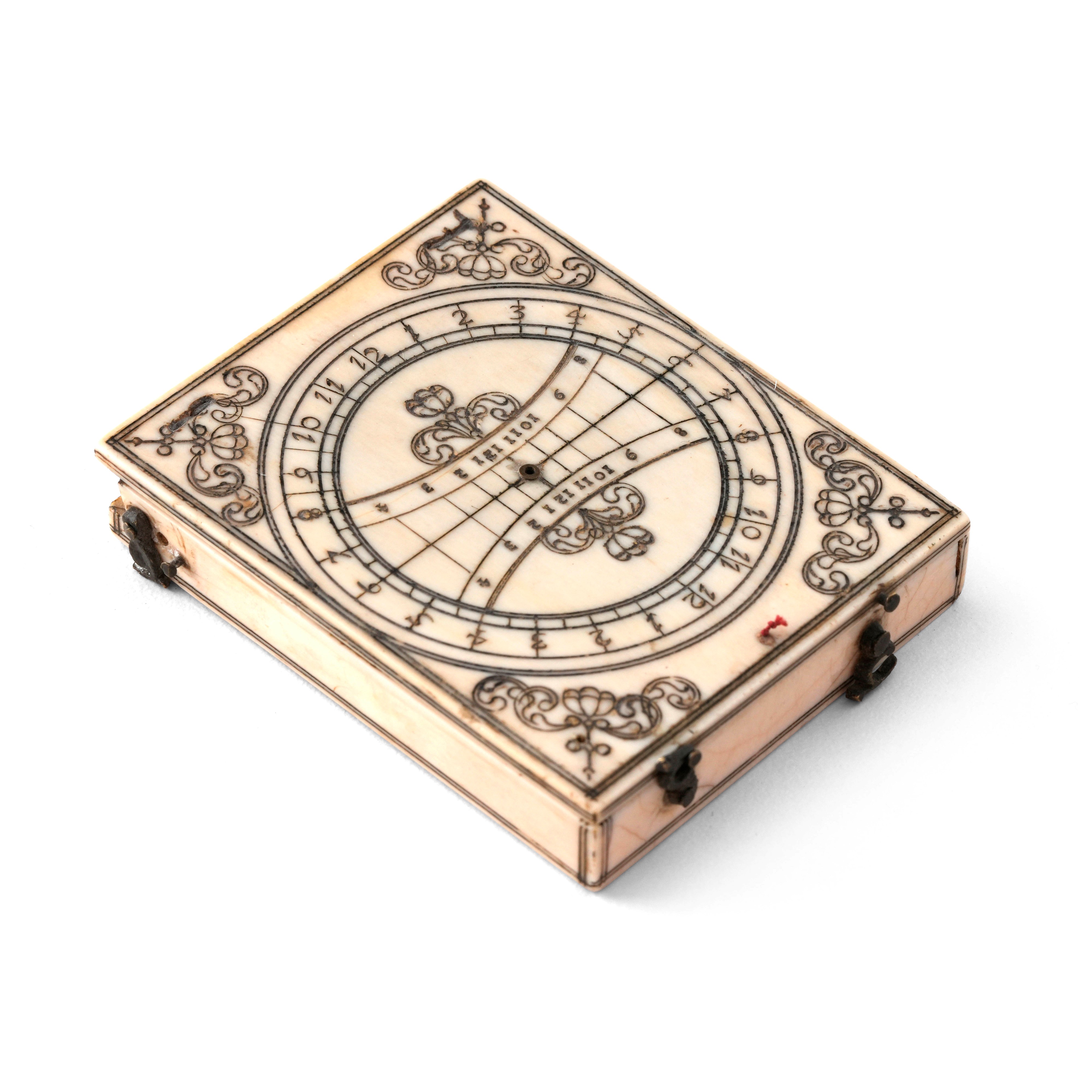 in avorio e peltro tipo Charles Bloud mancante della volvella sul retro della base. Completo di analemmatico magnetico