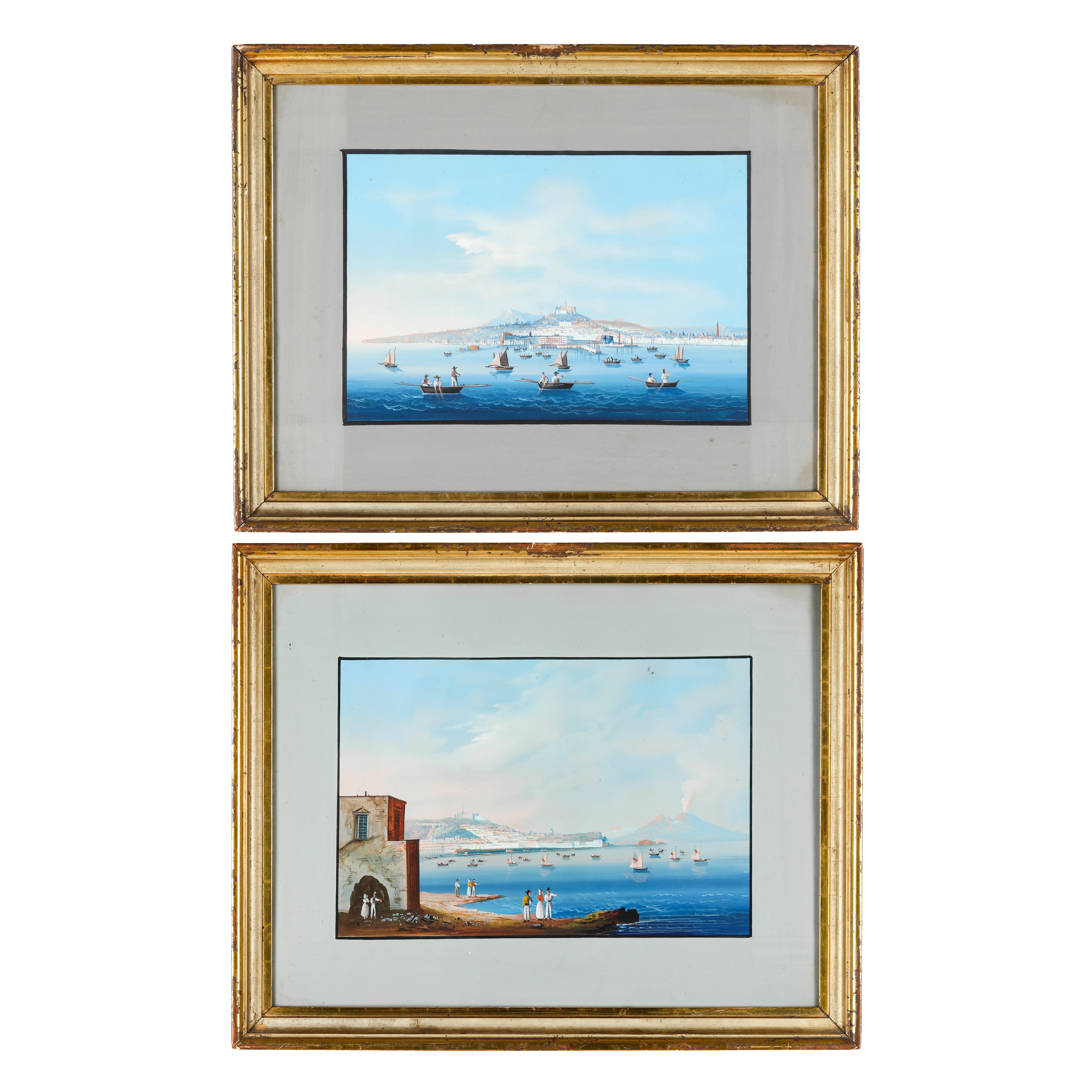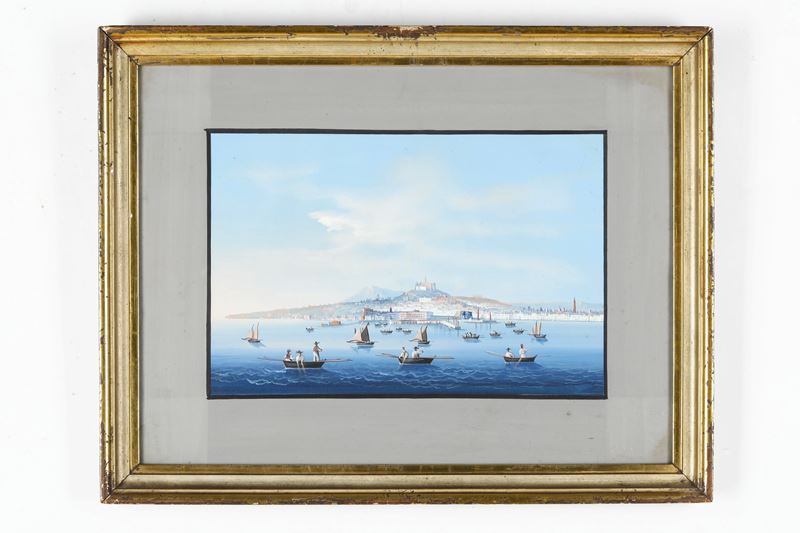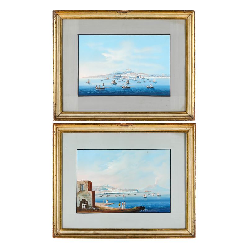 Pittore del XIX secolo Coppia di vedute del Golfo di Napoli