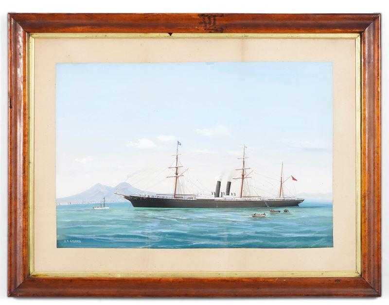 Pittore del XIX-XX secolo S.S. Liguria in navigazione nel golfo di Napoli