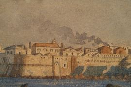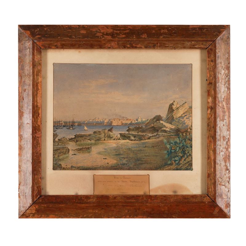 Pittore francese del XIX-XX secolo Veduta di Taranto con una parte della flotta italiana