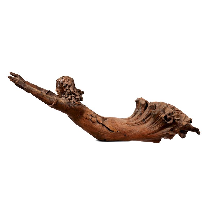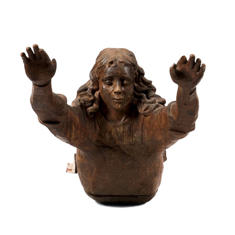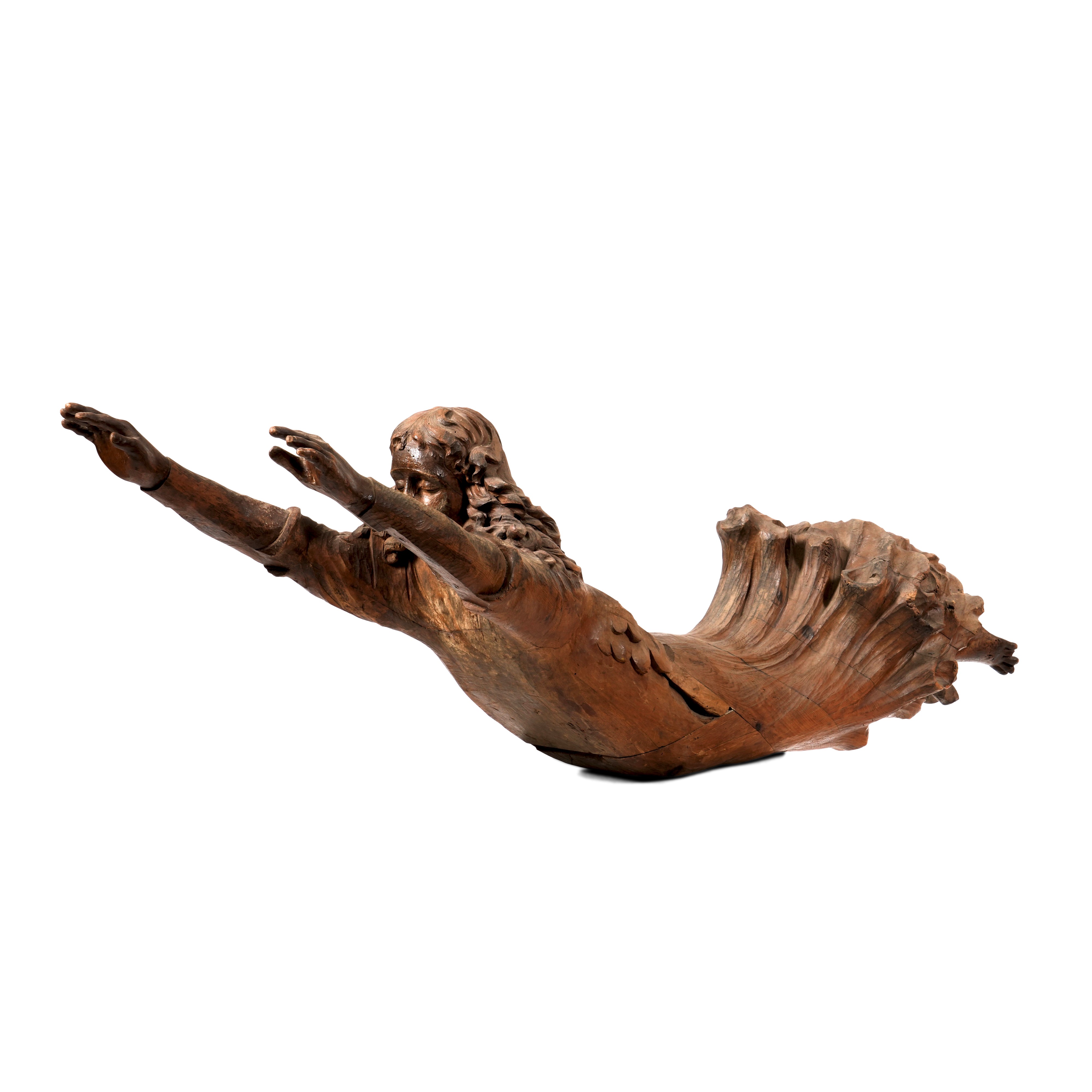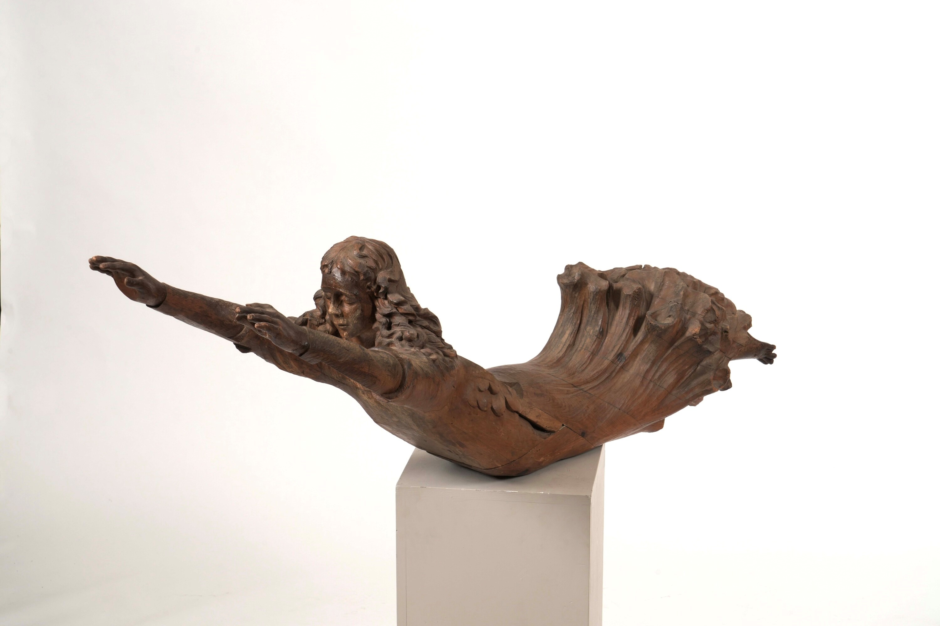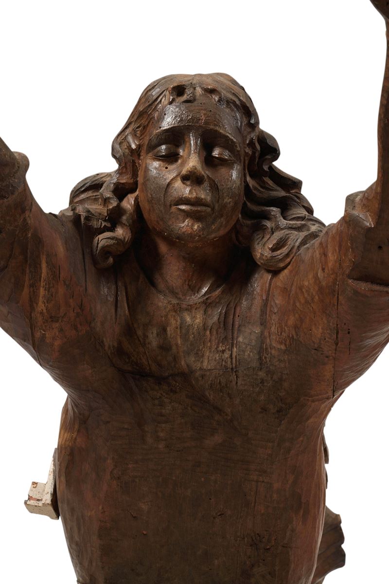 Polena in legno intagliato e dipinto in policromia raffigurante personaggio femminile, XVIII-XIX secolo