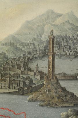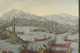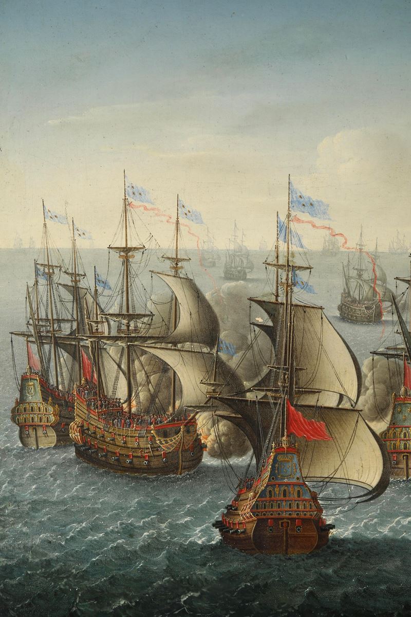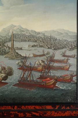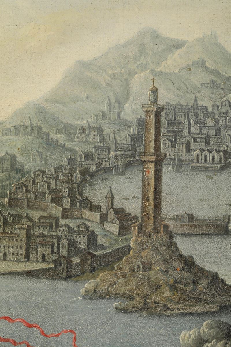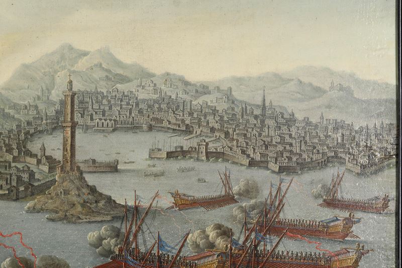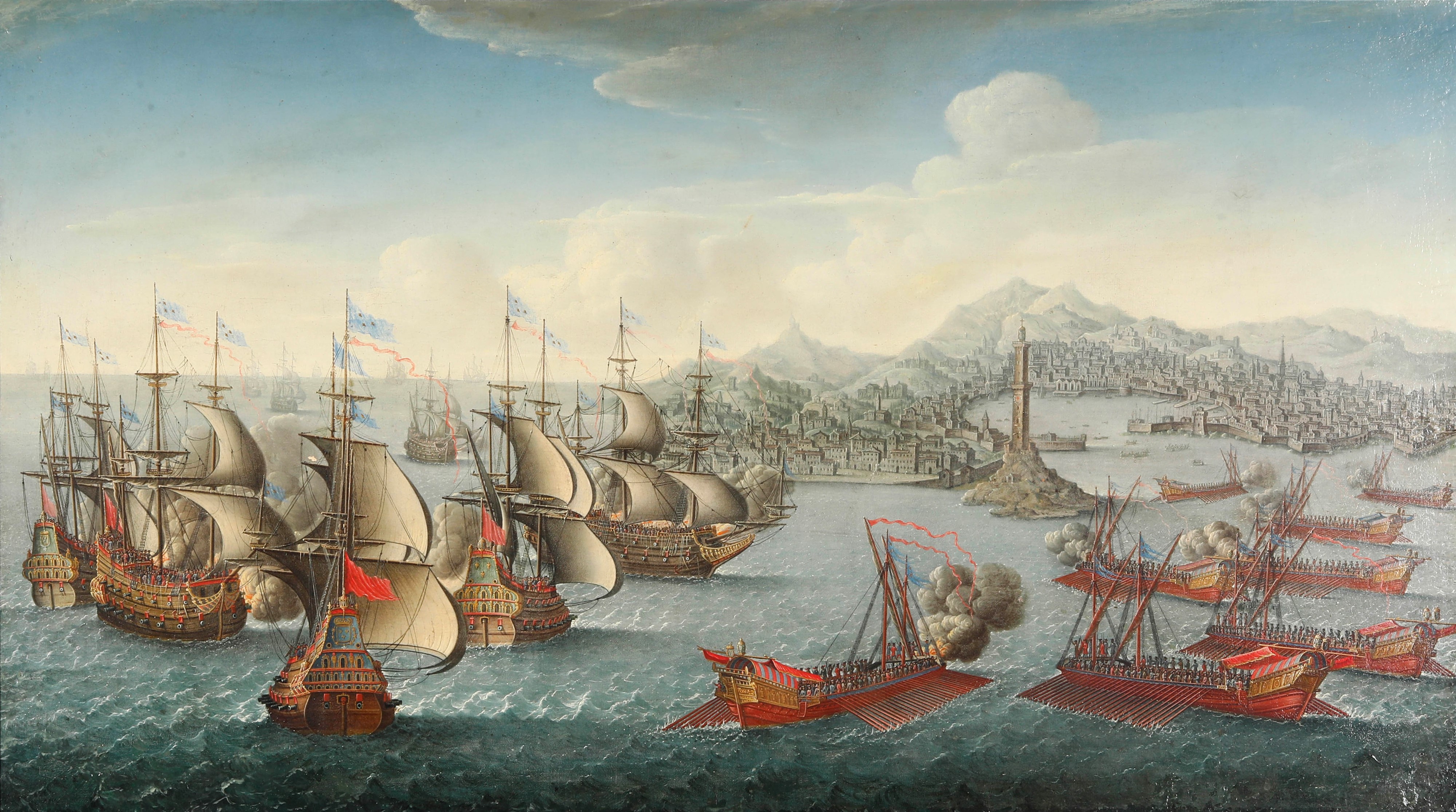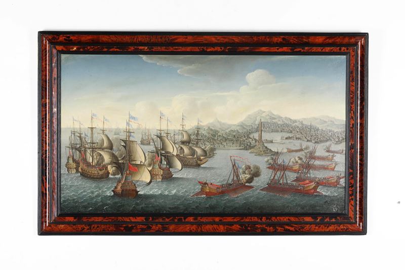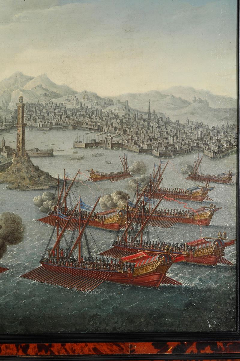 Scuola del XVII secolo Battaglia navale di fronte al porto di Genova