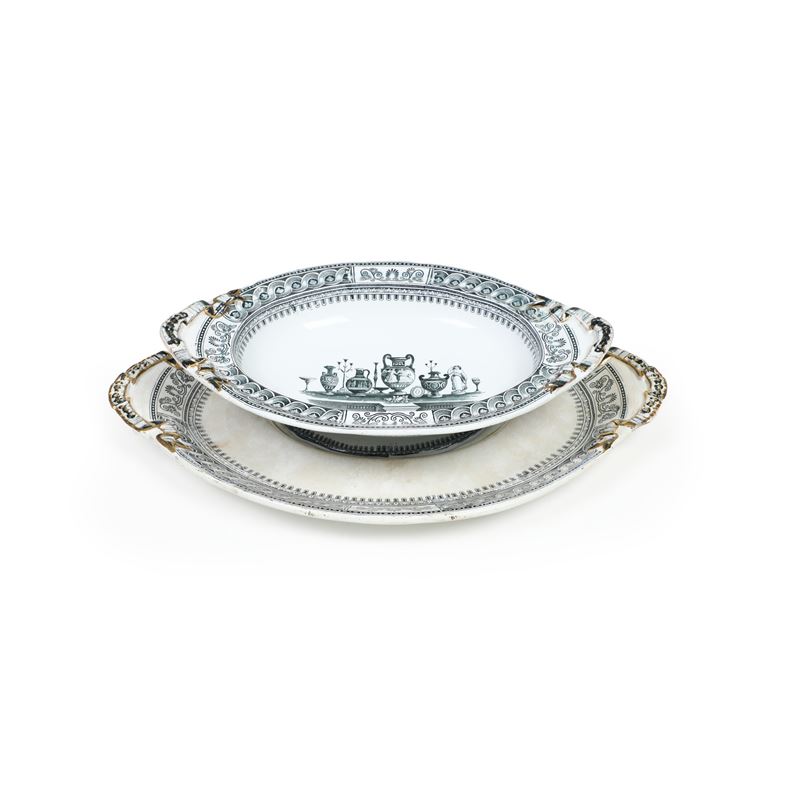 Alzata e piatto ovale. Inghilterra, circa metà del XIX secolo.
