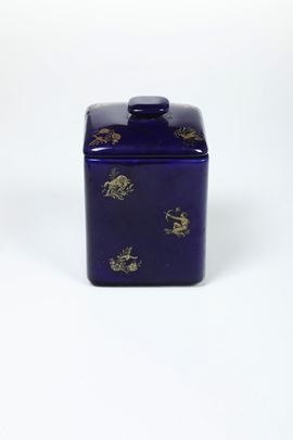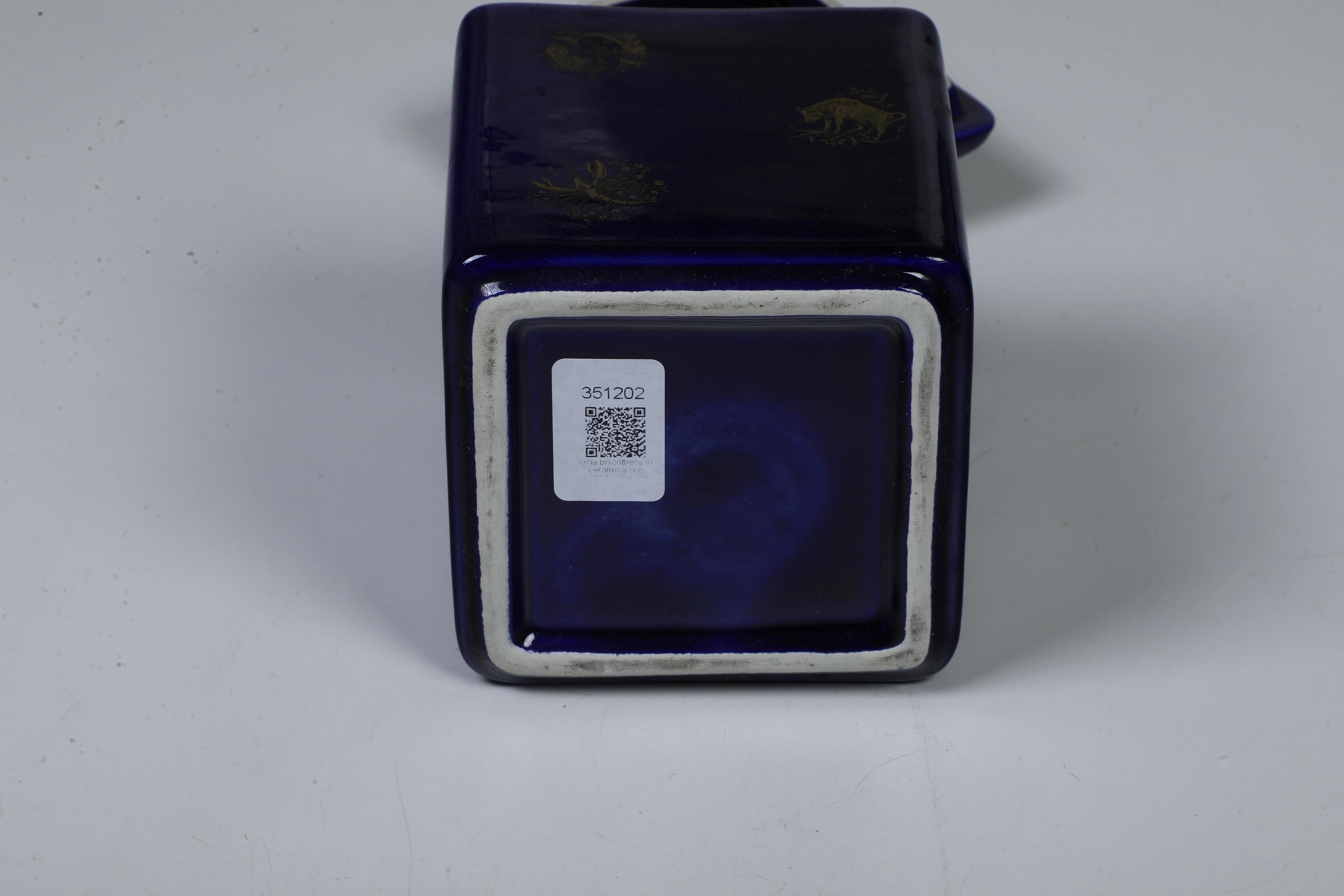 Porcellana a fondo blu e oro. Marca: assente. Dimensioni: altezza cm 18; cm 11x11. Conservazione: ottima