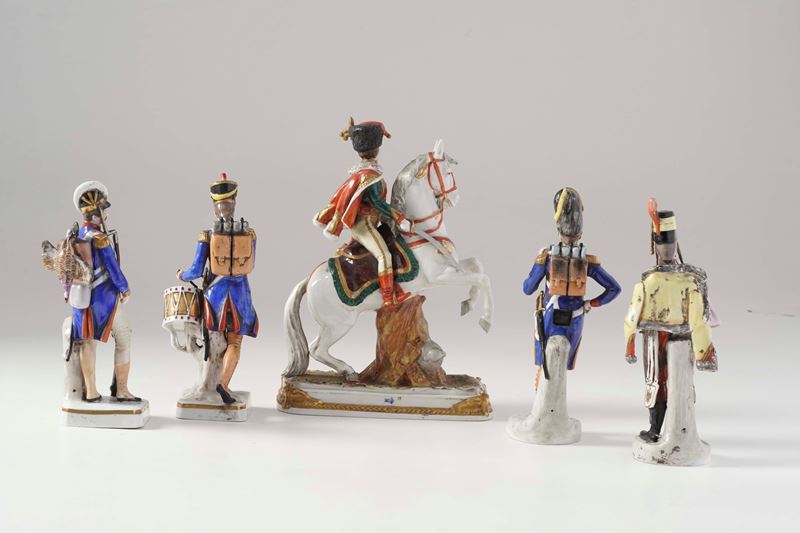 Cinque sculturine di militari Probabilmente Turingia, XX secolo.