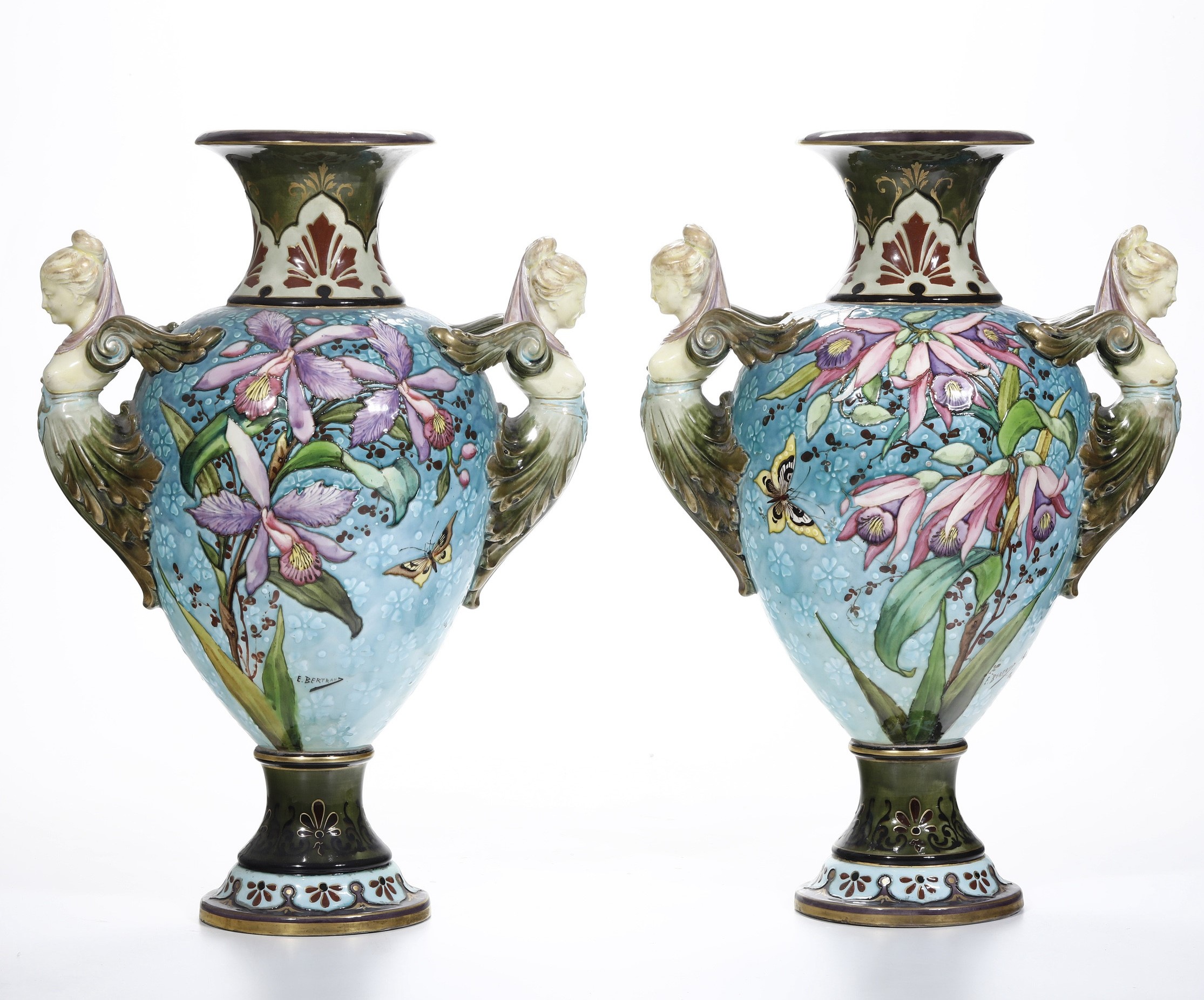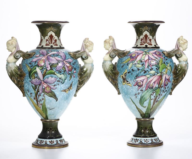 Coppia di grandi vasi firmati E. Bertrand.