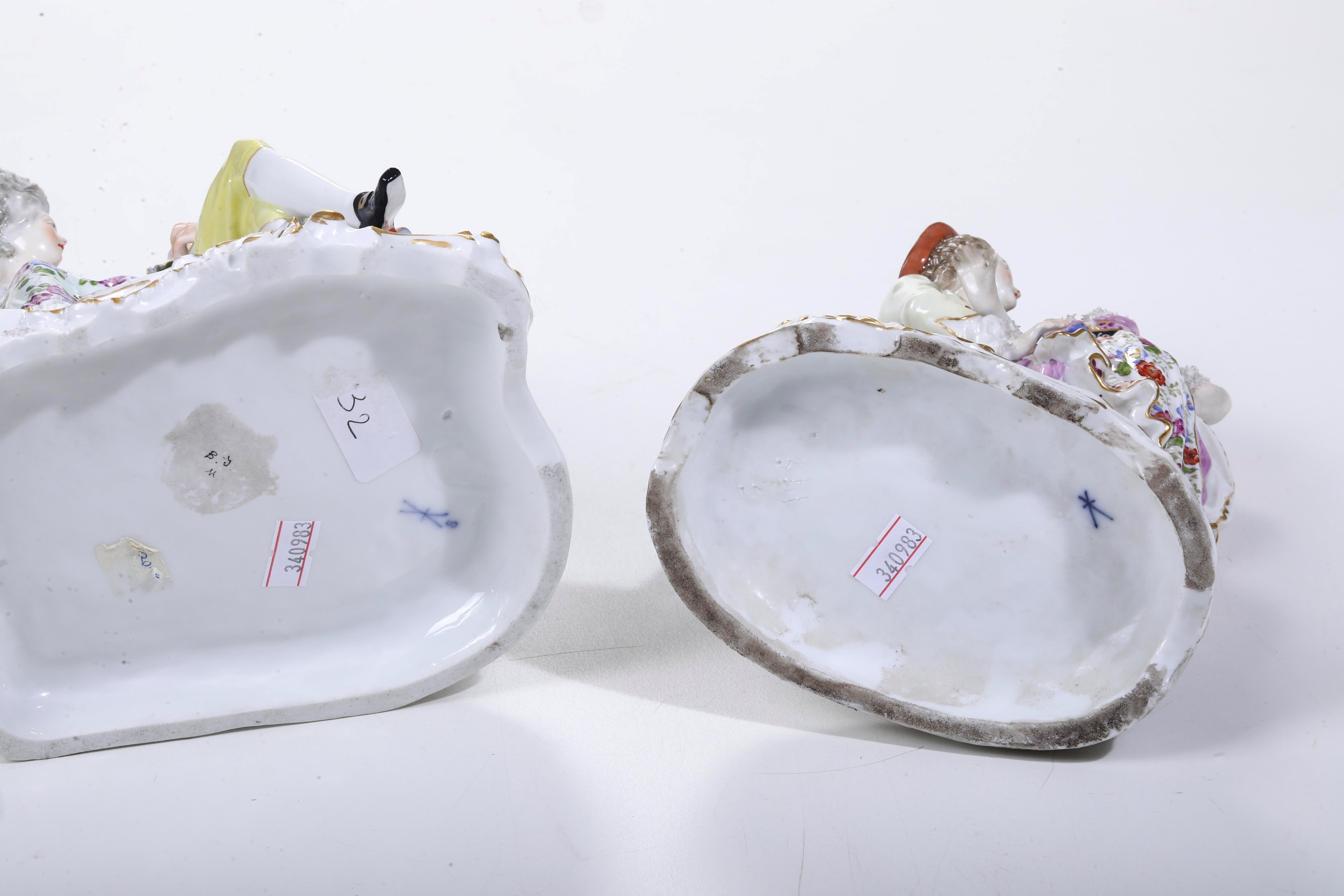 Porcellana. Marca: tre trattini incrociati con lettera "S"; rispettivamente tre trattini incrociati. Altezza cm 20,5; cm 20,2. Conservazione: ottima; mancanze minori.
