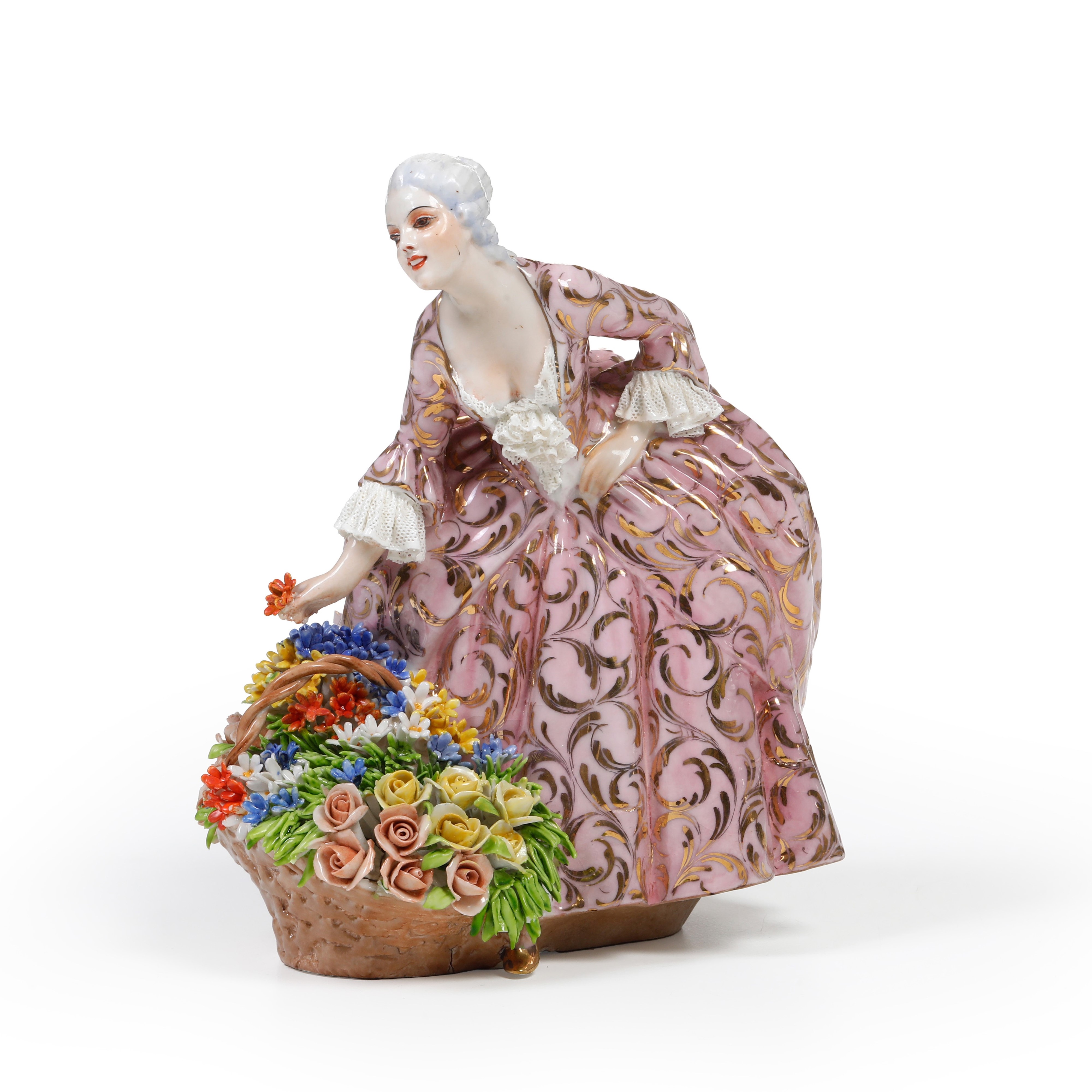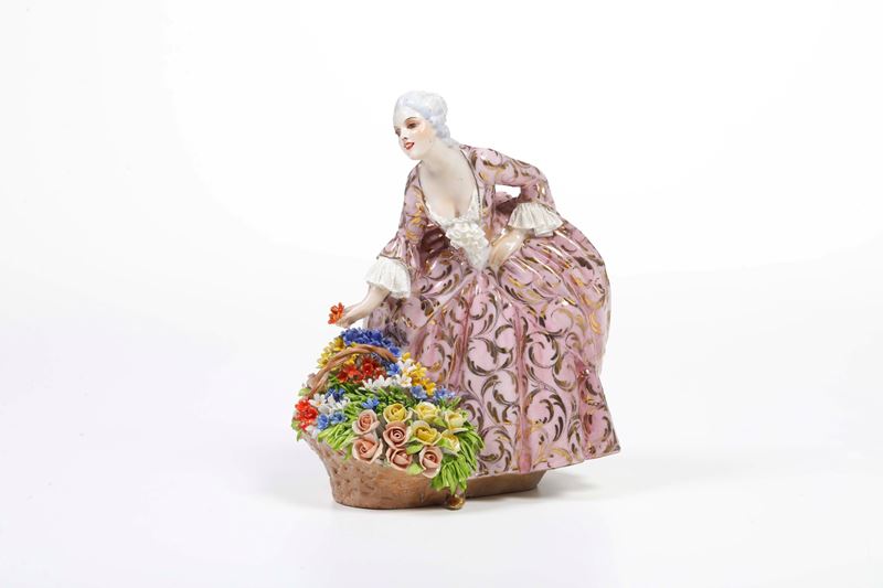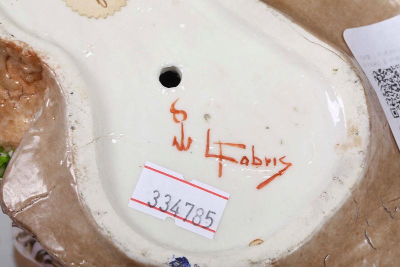 Porcellana policroma e dorata. Marca: ancora e "L Fabris" in rosso. Altezza cm 19,3. Conservazione: ottima