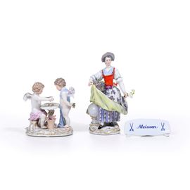 Al lotto si aggiungono: una figura giardiniera di Meissen (altezza cm 20; testa staccata, fiori della mano sinistra di rimpiazzo).