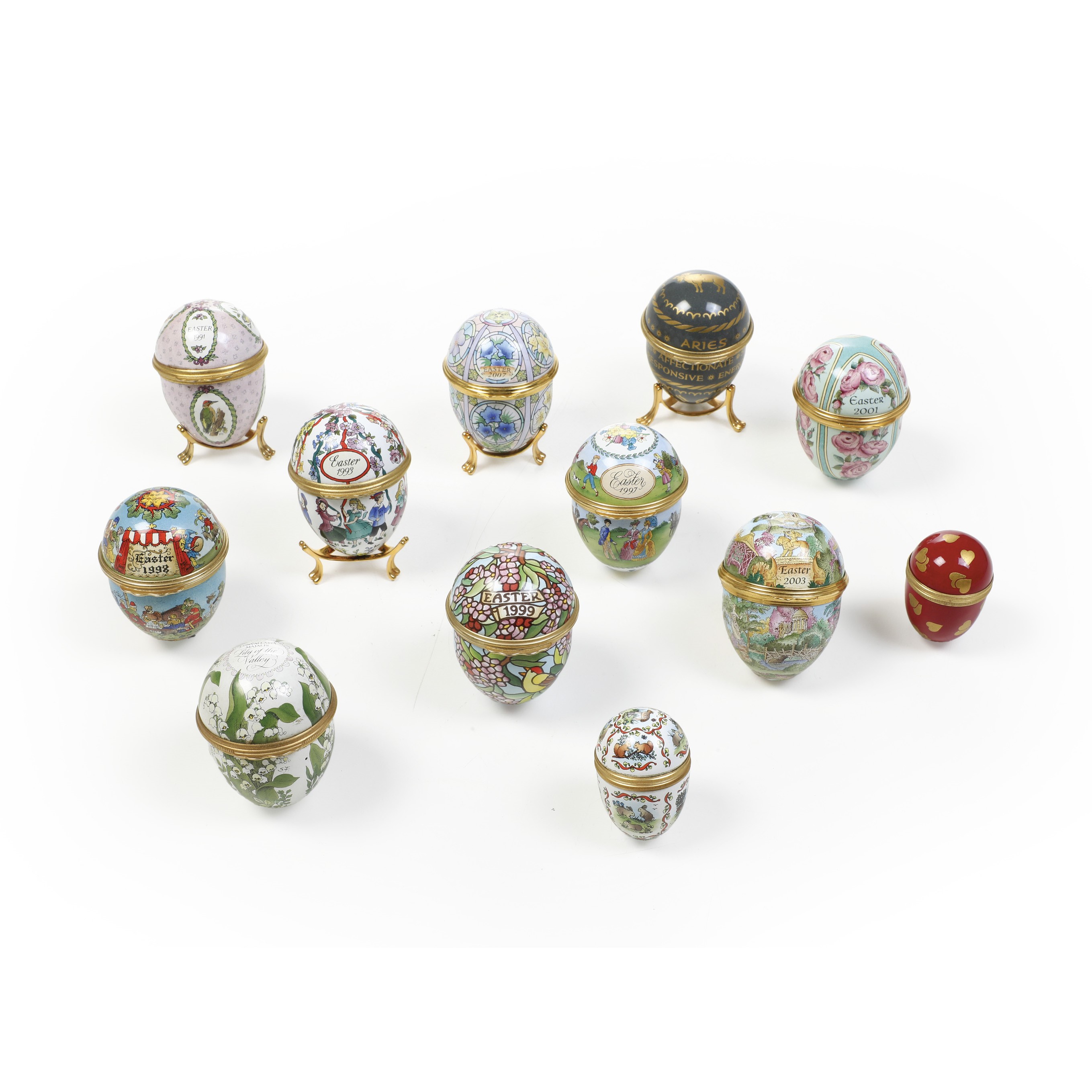 Lotto di 12 uova. Inghilterra, Halcyon Days Enamels, fine del XX secolo.