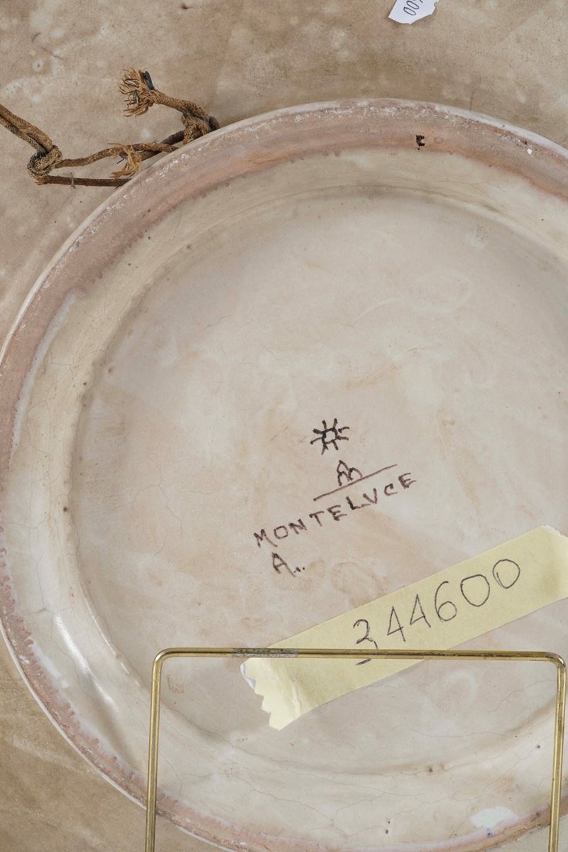 Maiolica. Marca: monte con sole alto e "Monteluce A.". Diametro cm 41,5. Conservazione: ottima