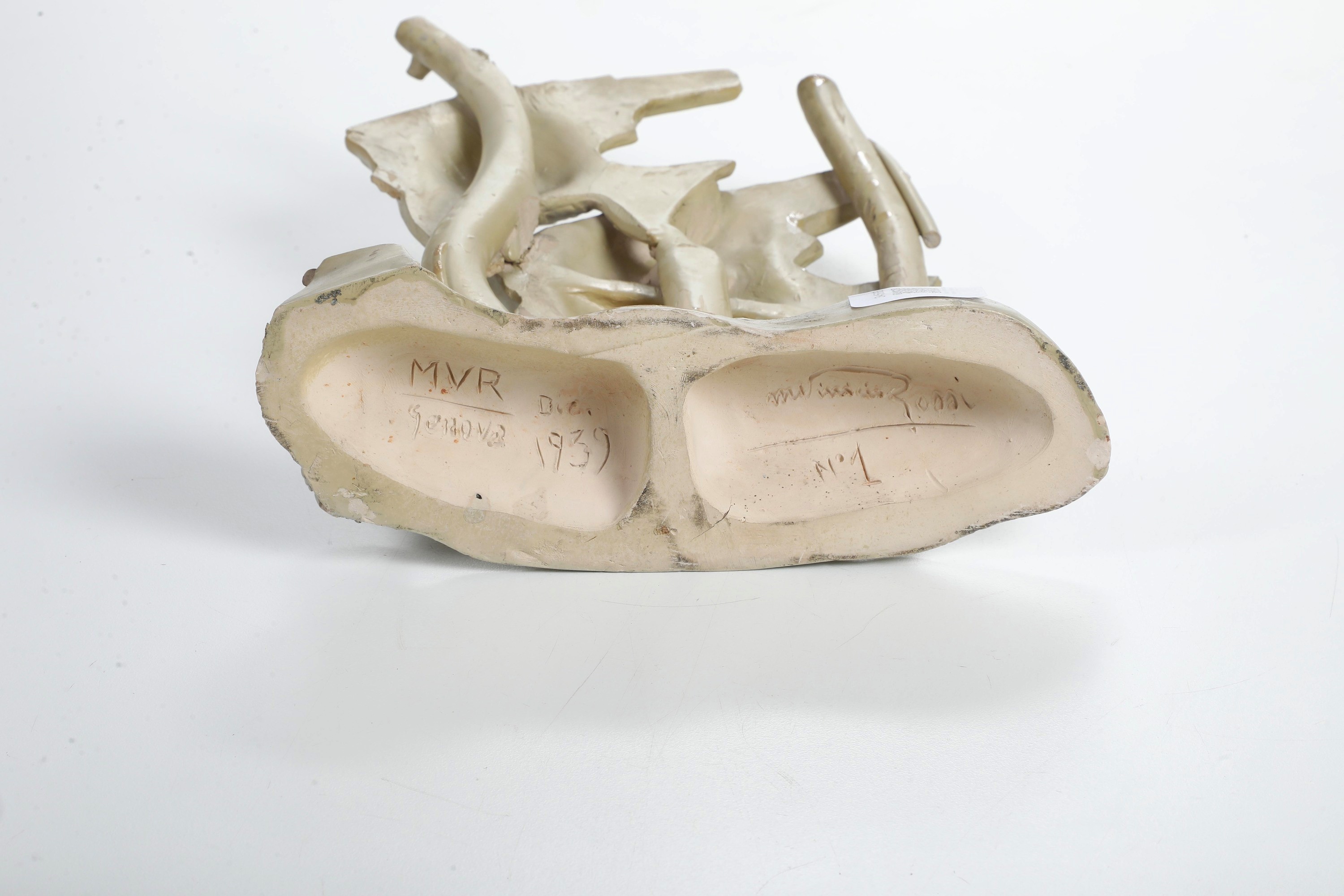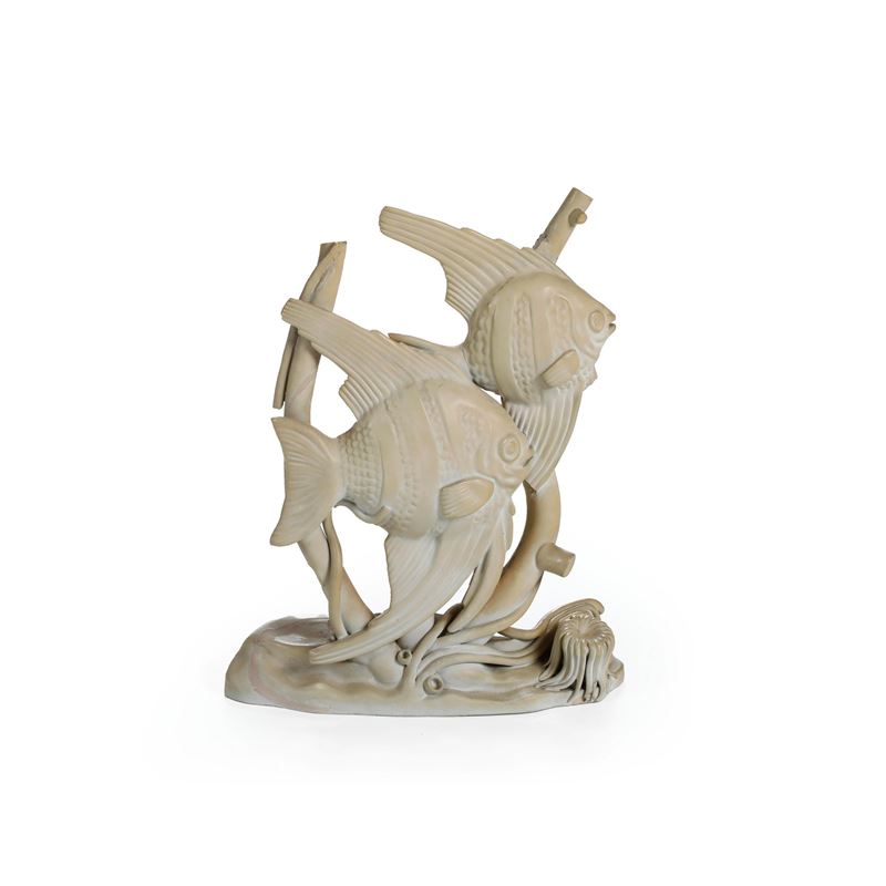 Scultura con pesci. Firmata "Vinicio Rossi", "M.V.R." Genova dic. 1939.