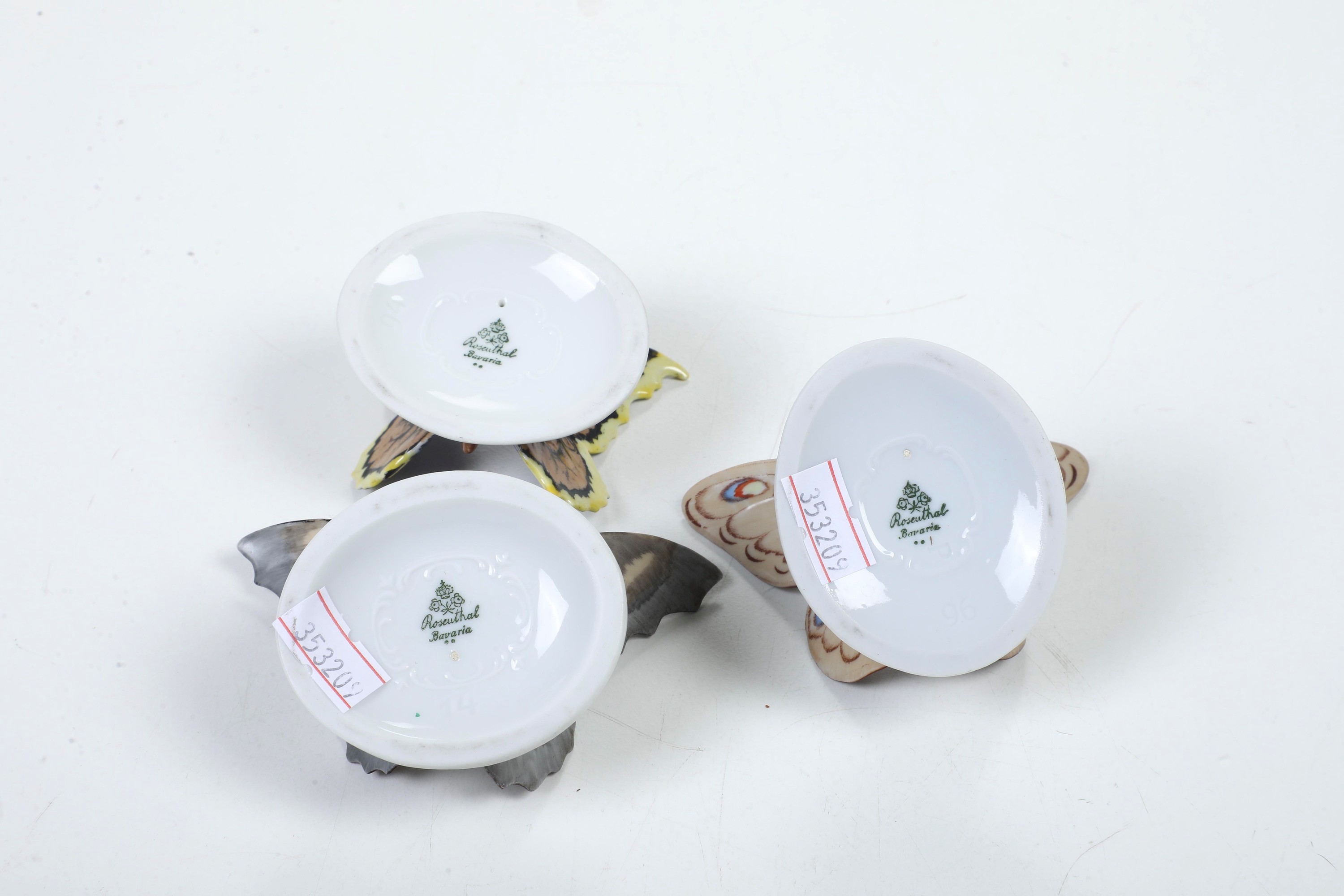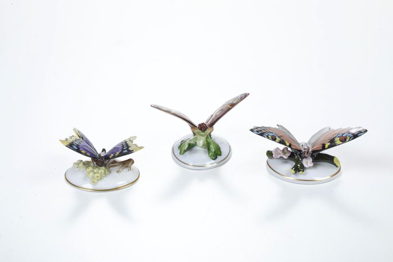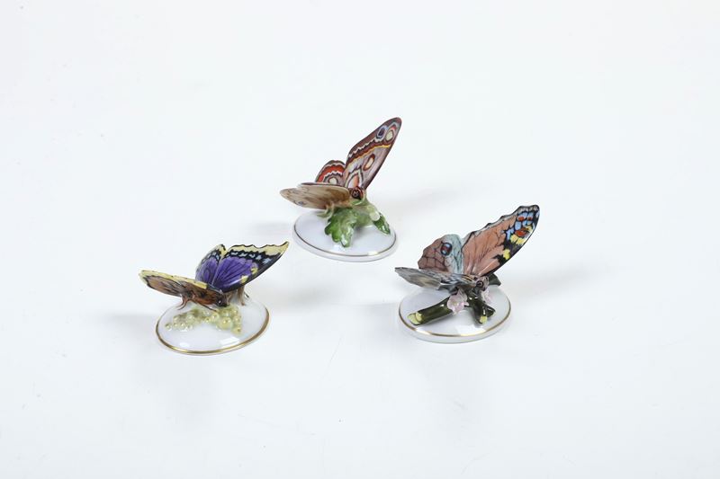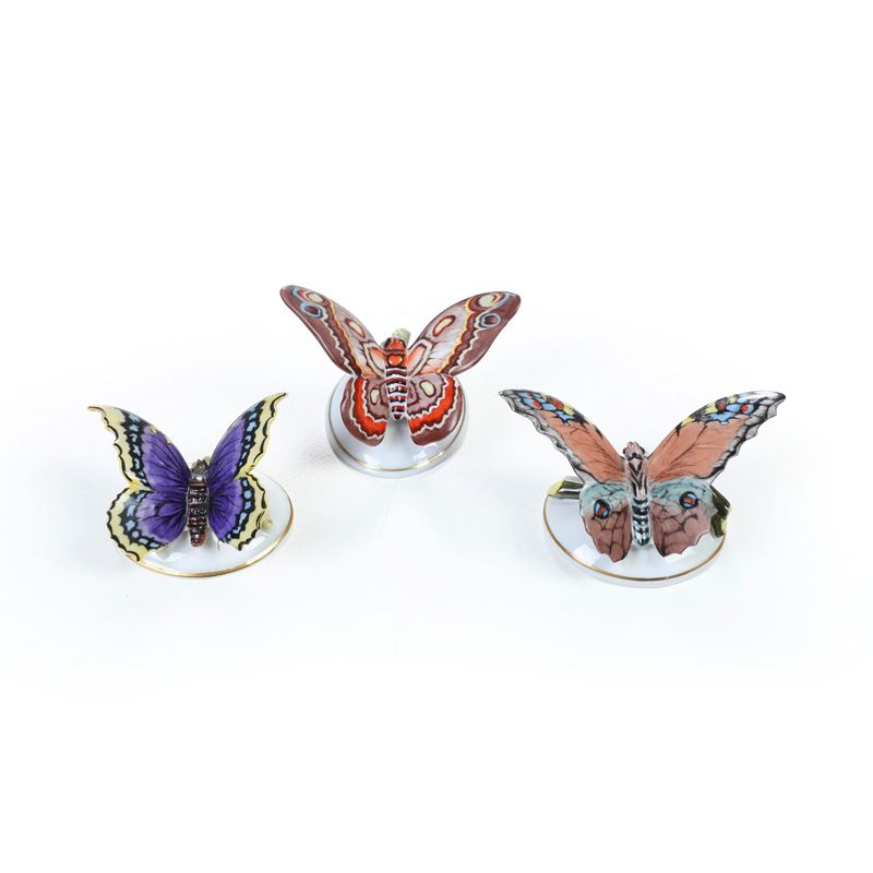 Tre figurine di farfalle. Germania, Manifattura di Rosenthal, 1928.