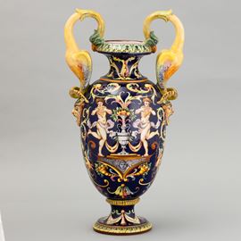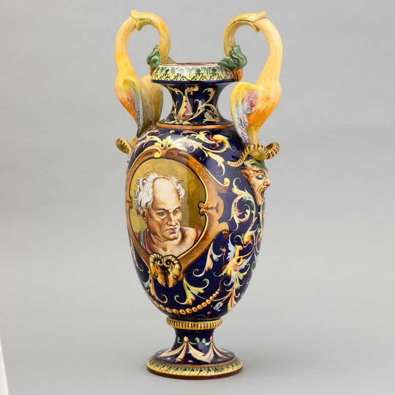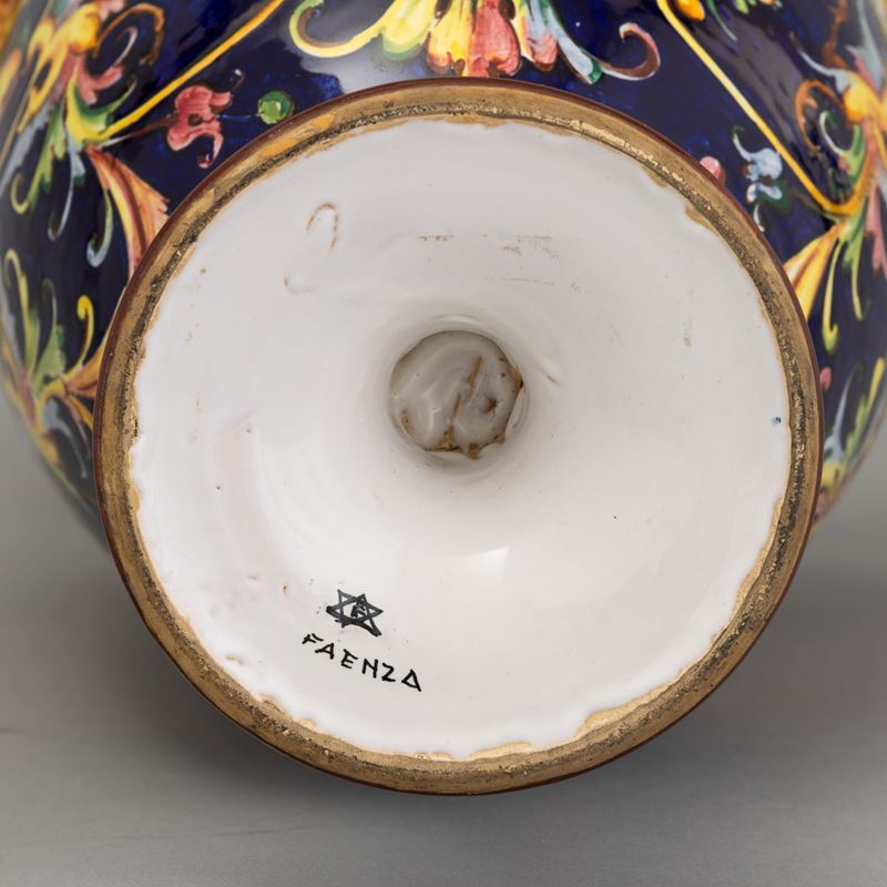 Maiolica. Marca: stella con “Faenza” in nero. Altezza cm 46 circa. Conservazione: ottima