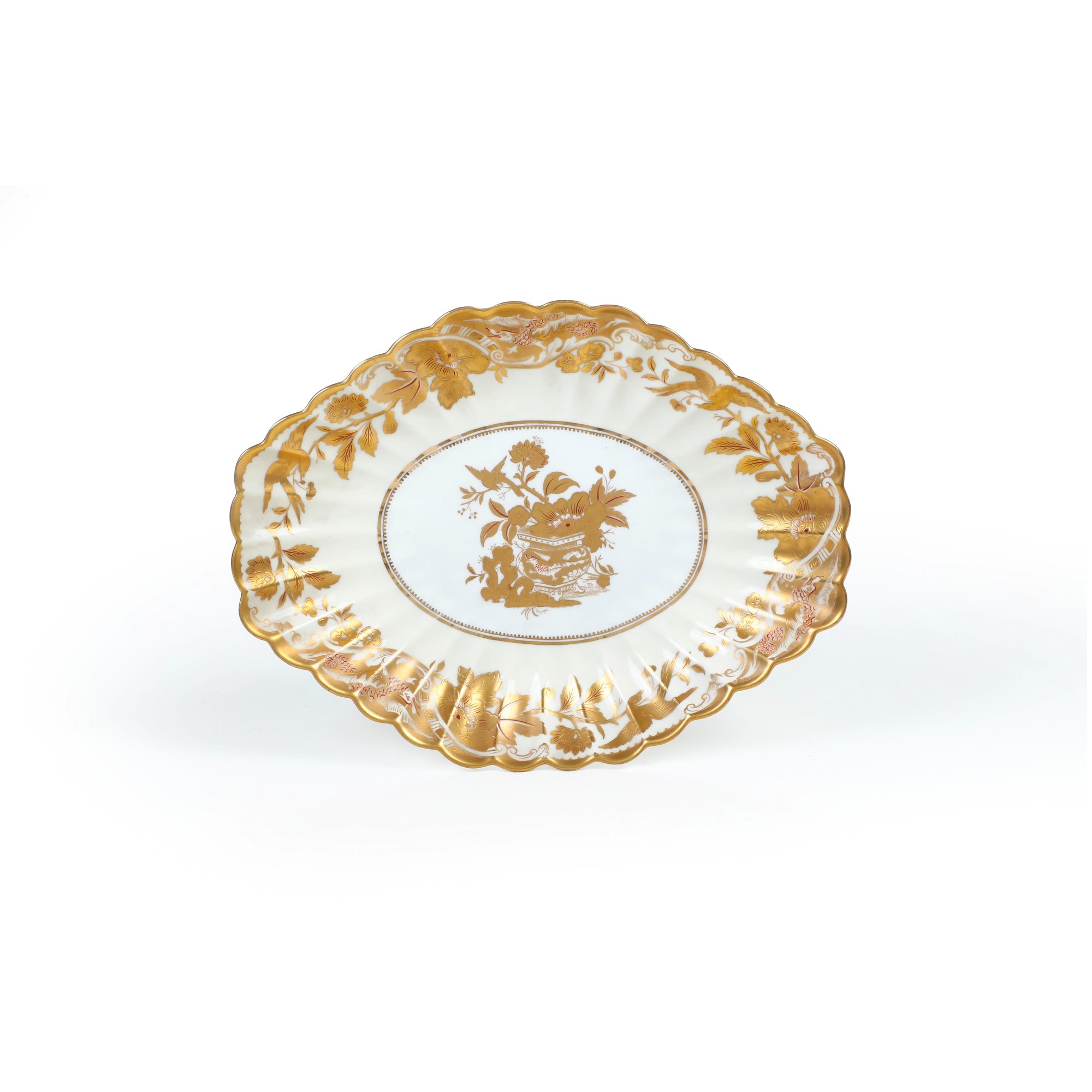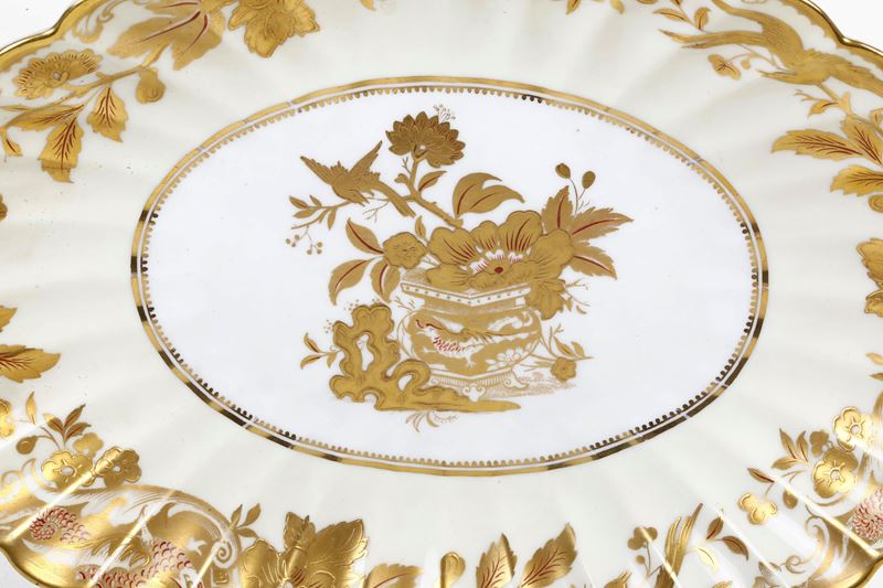 Porcellana. Marca: simbolo grafico con due serpenti attorcigliati a un bastone alato detto "Caduceo". Dimensioni: altezza cm 4,5; cm 28x21. Conservazione: ottima