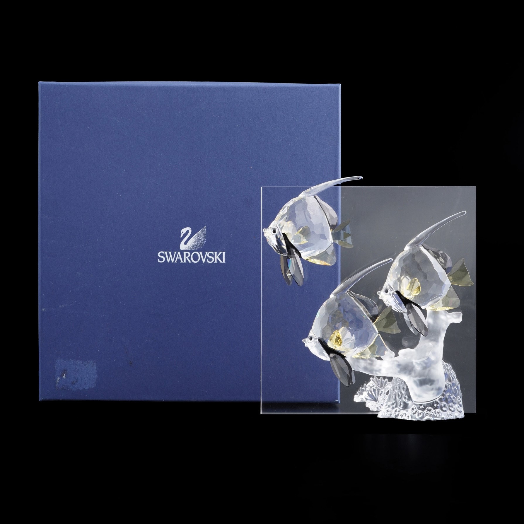 Cristallo trasparente e policromo. Marca: cigno Swarovski e "H T 2007". Dimensioni: 19,3x19,3. Conservazione: ottima. Scatola originale.