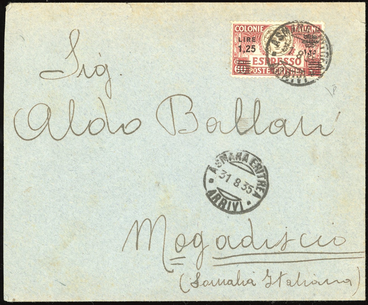 COLONIE ITALIANE - ERITREA ESPRESSI 1935 - 1,25 lire su 60 cent., dent. 11, soprastampa in nero (8)