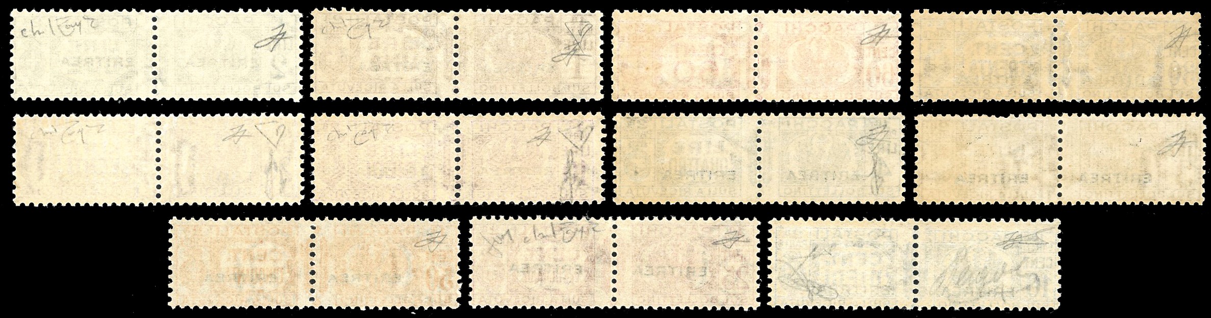 COLONIE ITALIANE ERITREA PACCHI POSTALI 1916 - Soprastampati in caratteri piccoli, serie completa (1/8)