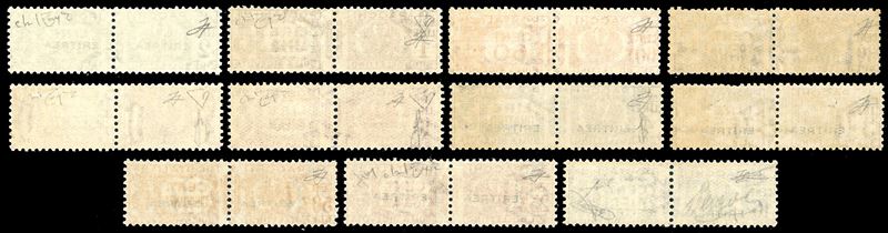 Nuovi, gomma originale integra, perfetti. Diversi valori firmati da noti periti, cert. Fiecchi per il raro 10 cent. e cert. Ferrario per la serie. Cat. € 27.000