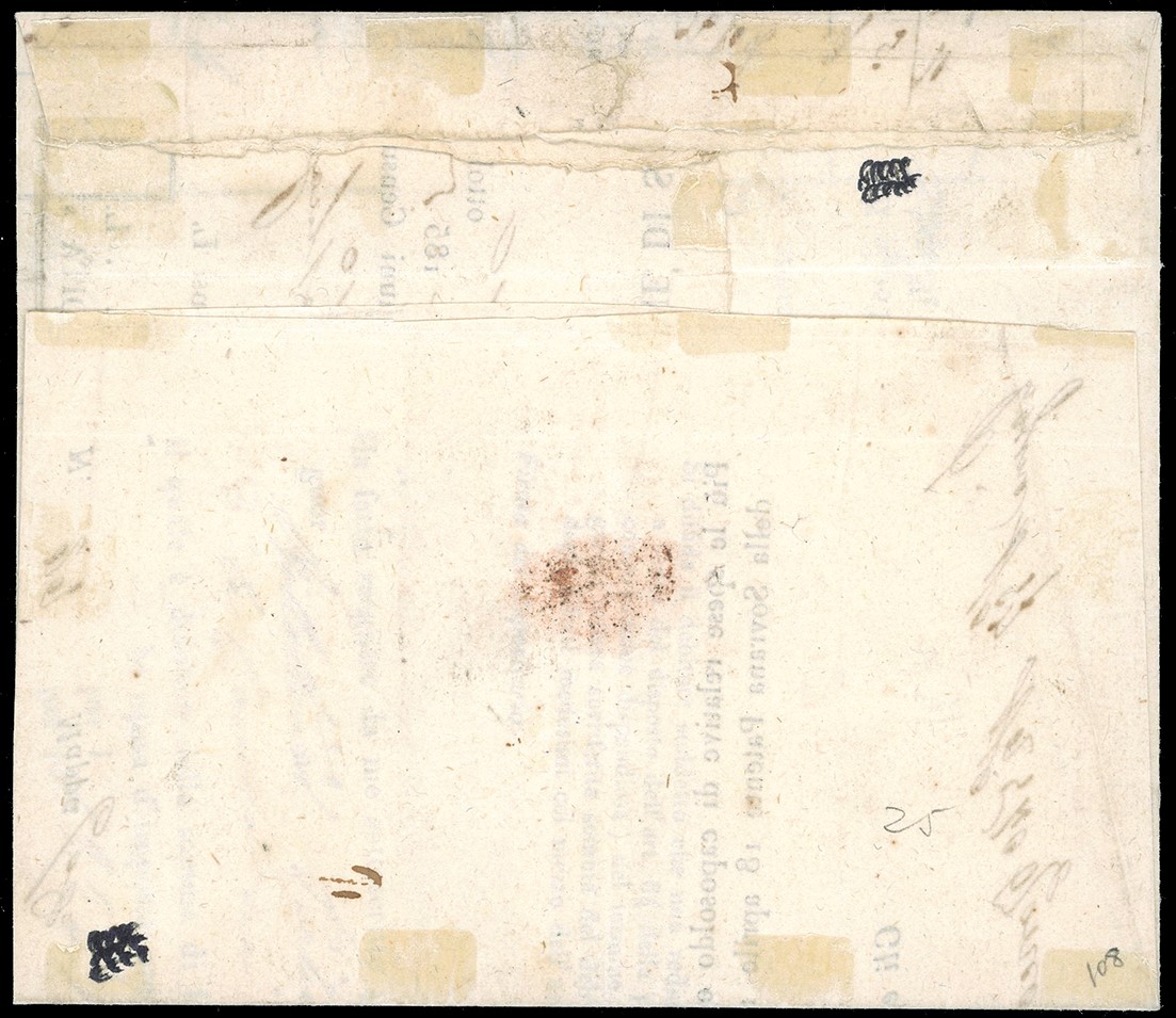 LOMBARDO VENETO 1856 - 5 cent. giallo arancio chiaro, due esemplari, 10 cent. nero, tutti carta a mano, e, al verso per [..]