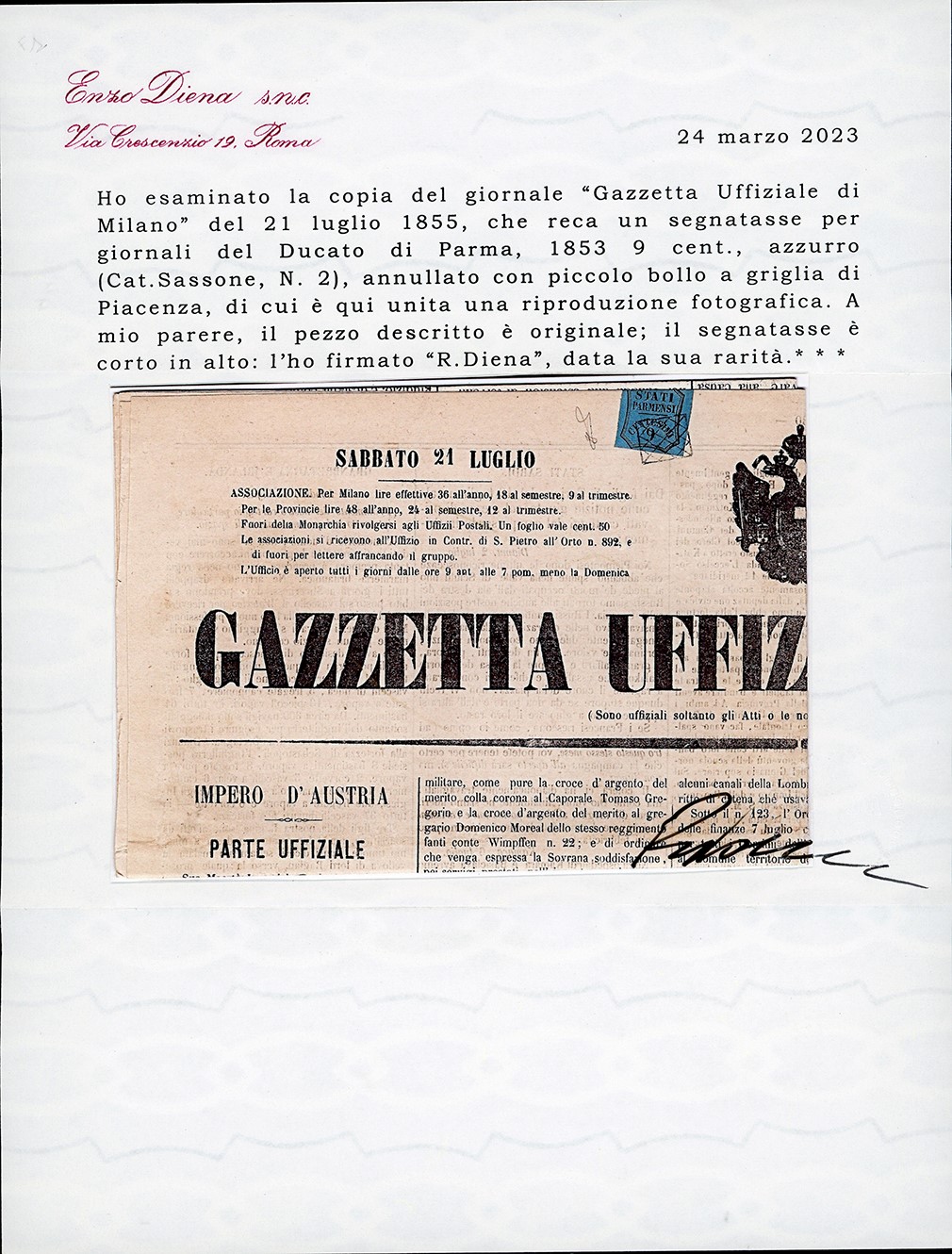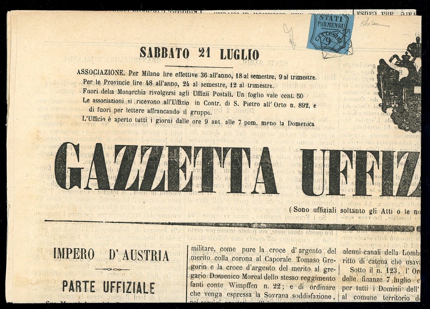 LOTTI E COLLEZIONI - PARMA 1852/1859 - Cinque lettere e due giornali con affrancature del periodo.