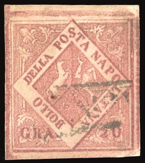 NAPOLI - FALSI PER POSTA 1859 - 20 grana rosa brunastro, falso per posta del VI tipo (F13a)