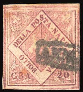 NAPOLI - FALSI PER POSTA 1860 - 20 grana carminio, falso per posta del V tipo (F12)
