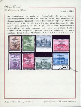 OCCUPAZIONI ITALIANE II GUERRA MONDIALE - LUBIANA POSTA AEREA 1941 - Soprastampati "R.Commissariato" in caratteri diversi, [..]